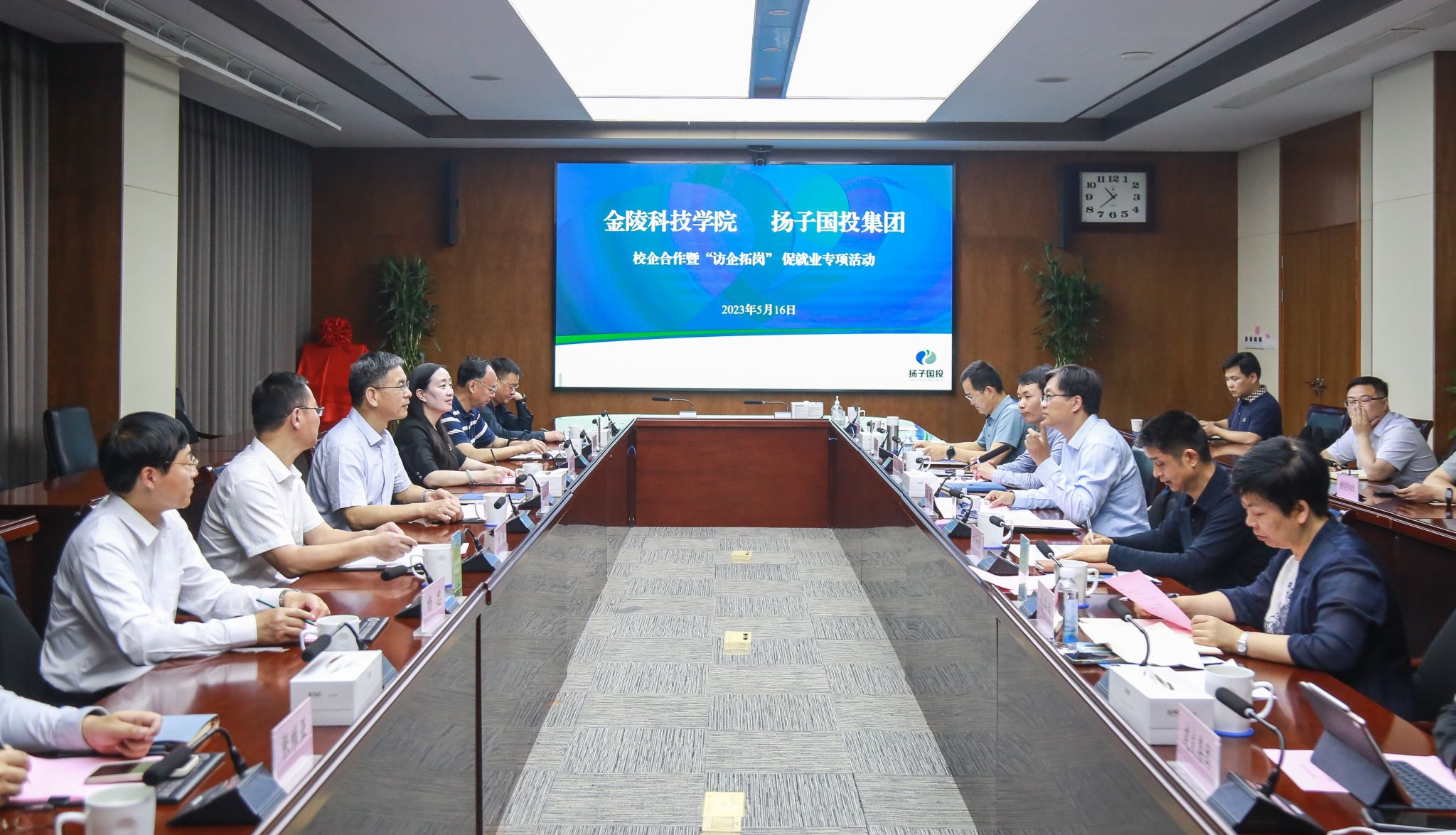 5月16日上午,校党委书记刘志远、副校长顾晓燕及党委办公室、招生与就业指导处、智能科学与控制工程学院、建筑工程学院、人文学院主要负责人到市属国有企业——南京扬子国资投资集团访企拓岗,推进校企合作。南京扬子国资投资集团总经理、党委副书记毛强,党委副书记刘妙雄及相关部门、成员企业主要负责人热情接待了刘志远一行。