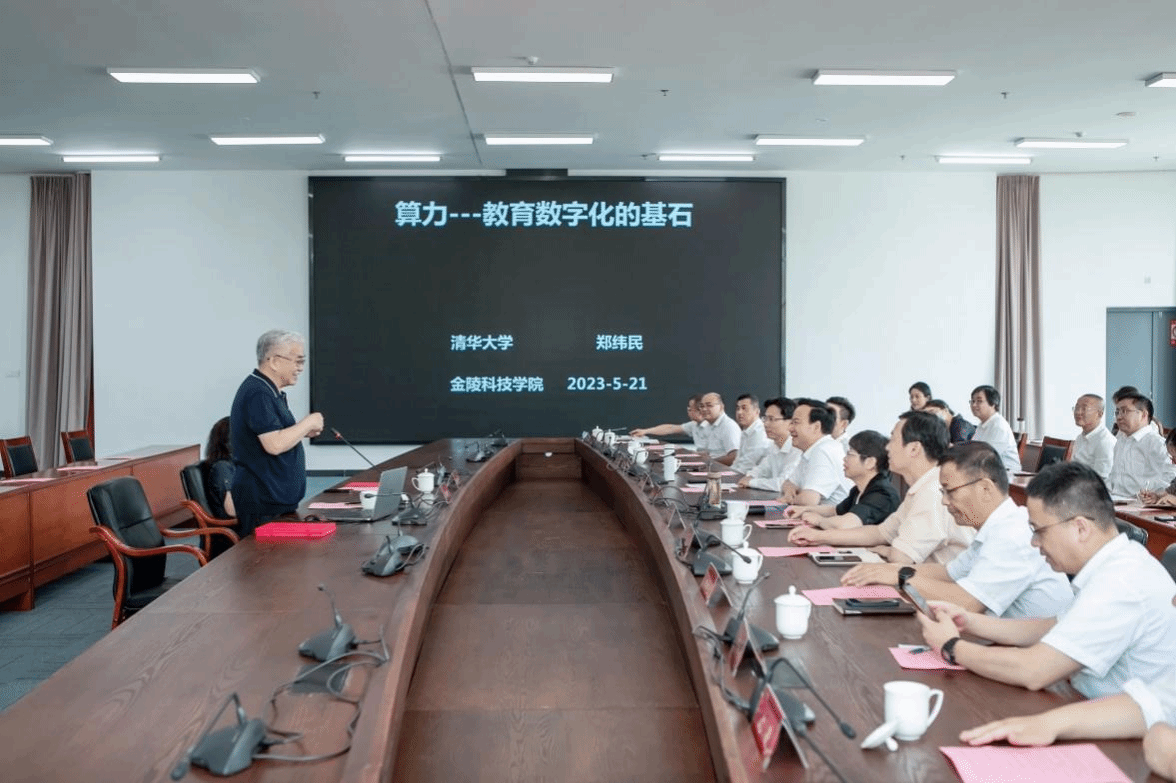 5月21日上午,我校名誉教授聘任仪式暨数字技术发展学术报告会在科技楼3号楼110会议室举行。国家科技进步一等奖、首届中国存储终身成就奖获得者、清华大学计算机系教授、第十届中国计算机学会理事长、中国工程院院士郑纬民应邀出席会议。校长刘永彪,副校长张燕,副校长叶智锐,校长办公室、人力资源处、科技处、商学院、软件工程学院、计算机工程学院相关负责人以及南京数字经济技术开发与应用工程研究中心、江苏省数字技术与产业经济发展工程研究中心、江苏数字化转型发展研究研究基地骨干教师参加会议。会议由叶智锐主持。