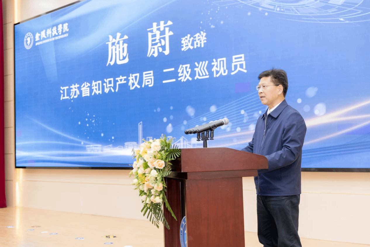 为贯彻落实党的二十大精神和习近平总书记关于知识产权工作系列重要指示批示精神,5月24日,我校在科技楼报告厅举办以“加强知识产权法治保障,有力支持全面创新”为主题的第十二届知识产权周主题活动。江苏省知识产权局二级巡视员施蔚、南京市知识产权局一级调研员王荣、江苏省知识产权保护中心副主任李晓飞、南京市知识产权局公共服务处副处长余国权,校长刘永彪、副校长张燕、副校长叶智锐出席活动。活动由叶智锐主持。