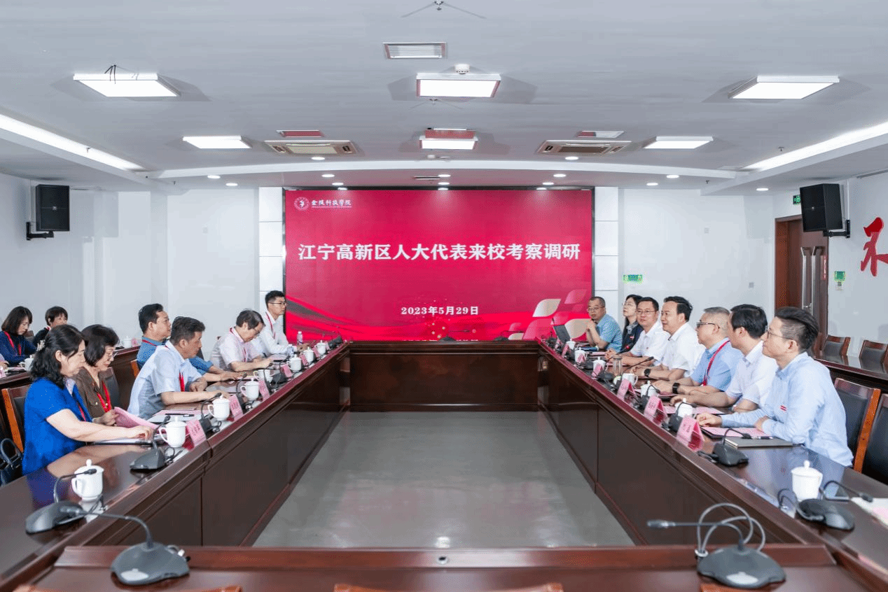 5月29日,在江宁高新区人大工委主任吴传春带领下,高新区人大代表一行16人来我校调研数字经济及文创产业情况。校长刘永彪、副校长高永祥及党委办公室、校长办公室、教务处、科技处等相关部门负责人参加了活动。