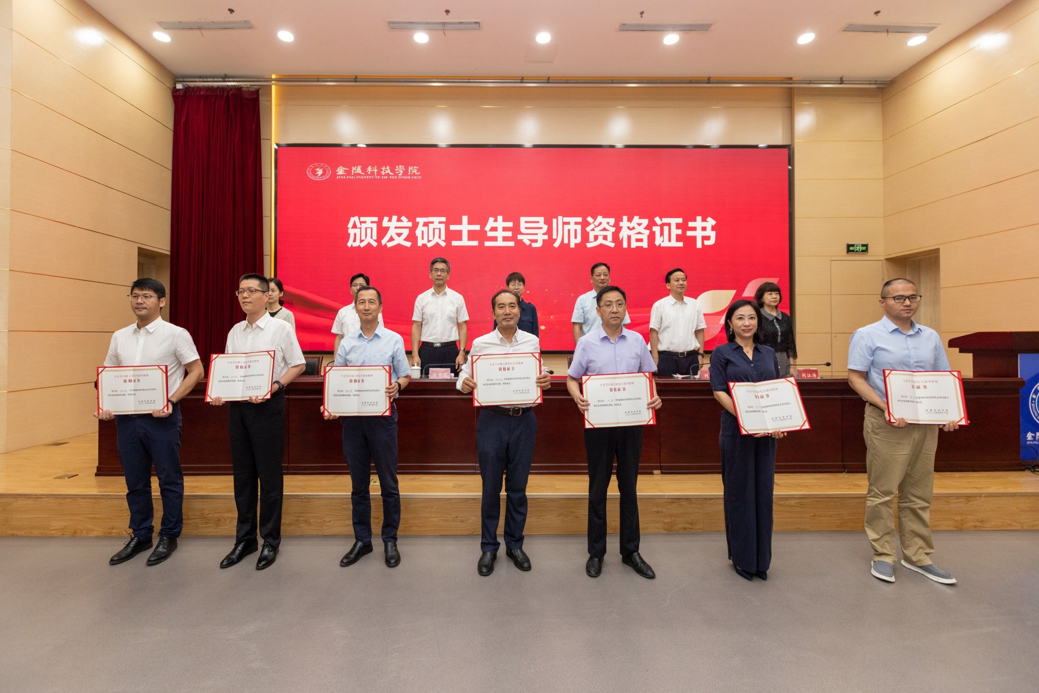 出席会议的领导嘉宾向导师代表颁发了资格证书。软件学院院长曾岳、建筑工程学院院长刘志峰、科技处处长刘磊分别代表电子信息、土木水利、会计三个硕士学位授权点,围绕如何提升办学能力和高质量培养专业硕士研究生作了汇报发言。