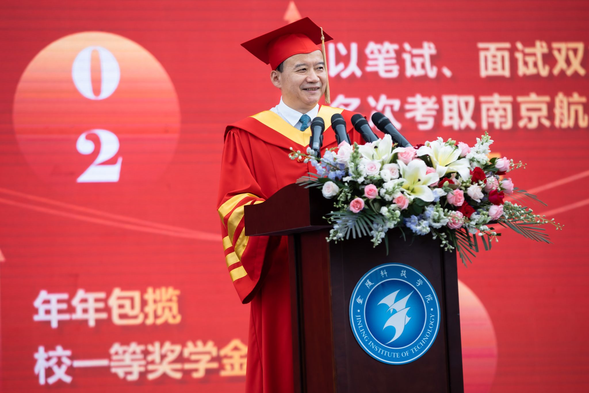 6月20日上午,我校2023届毕业典礼暨学士学位授予仪式在江宁校区北区田径运动场举行,校党委书记刘志远、校长刘永彪、校党委副书记单晓峰、副校长倪杰、副校长高永祥、纪委书记王延光、副校长顾晓燕、副校长叶智锐出席毕业典礼,校学位评定委员会委员、校本科学生工作委员会成员、二级学院主要负责人、教授代表、教职工代表、全体2023届毕业生以及家长代表齐聚一堂,共同见证了2023届毕业生这一人生中的重要时刻。毕业典礼由单晓峰主持。