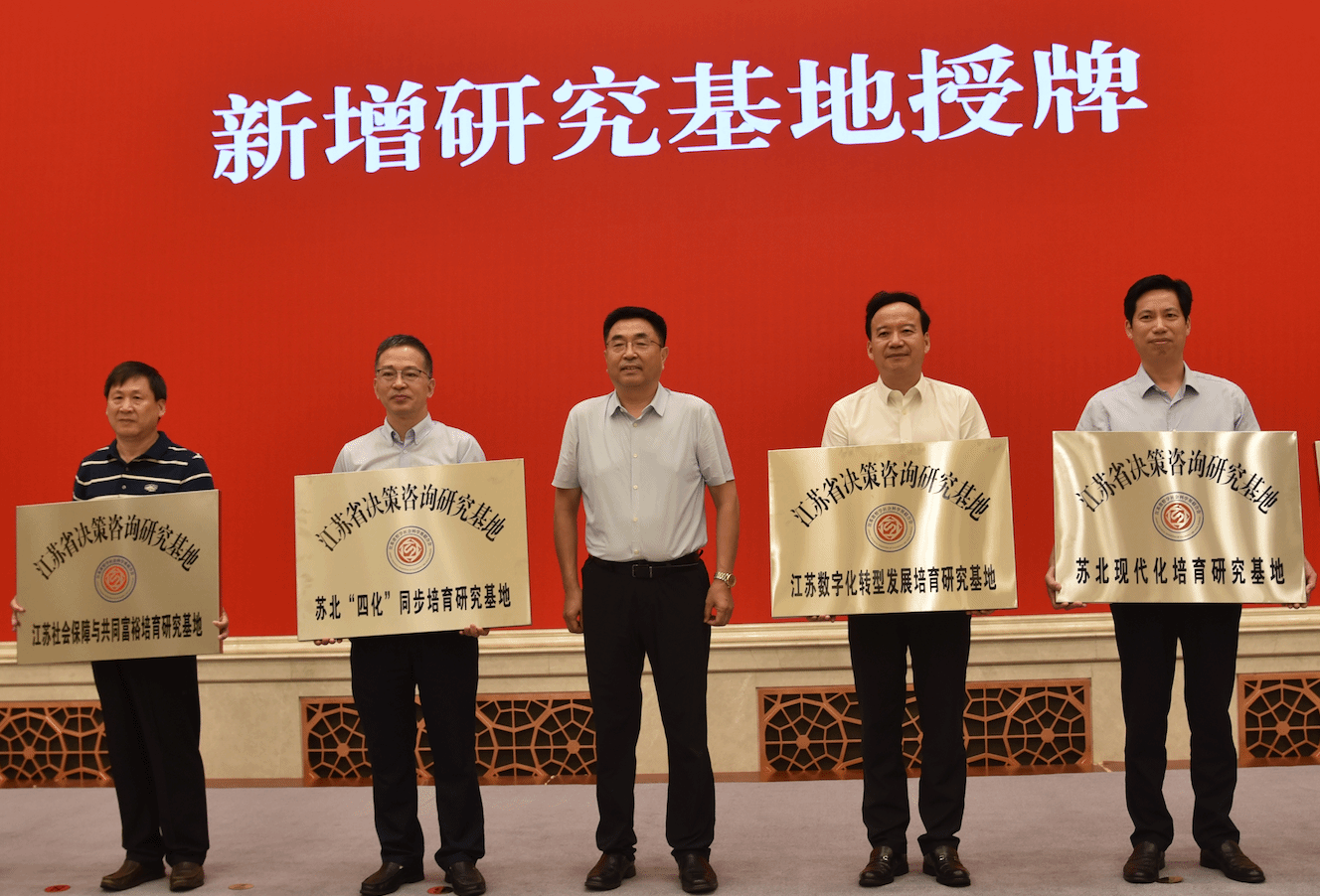 7月2日下午,由江苏省哲学社会科学界联合会主办的省决策咨询研究基地工作推进会在西康宾馆召开。江苏省社科联党组书记张新科,江苏省社科联副主席刘西忠、兼职副主席姚冠新、缪建东,以及全省各决策咨询研究基地首席专家,科研管理部门负责人,研究基地骨干专家参加会议。校长刘永彪代表江苏省数字化转型发展培育研究基地参加研究基地授牌仪式及首席专家聘任仪式,并作为新增研究基地代表介绍了新型智库建设经验。