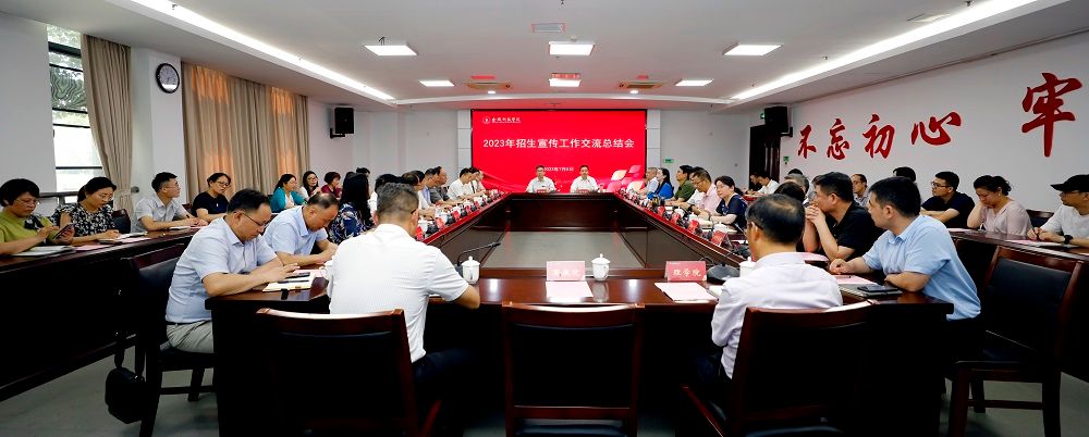 7月5日下午,我校在江宁校区图书馆第一报告厅召开2023年招生宣传工作交流总结会,全体校领导,招生与就业指导处负责人,各二级学院院长、招生宣传小组负责人及联合招生宣传小组负责人参加会议。会议由校长刘永彪主持。