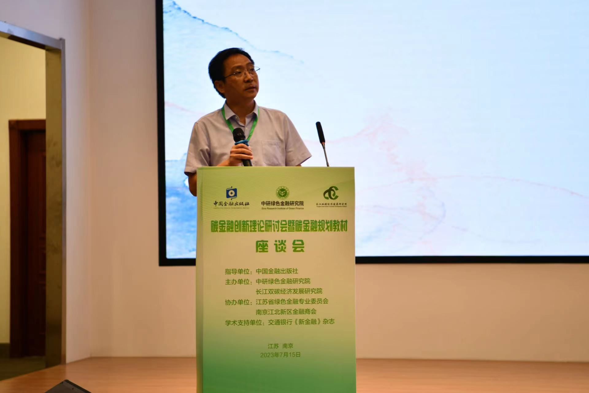 7月15日,恰逢全国碳交易市场启动即将两周年之际,碳金融创新理论研讨会暨碳金融规划教材座谈会在江苏省科技工作者之家召开,会议主题为“碳交易市场、碳金融与绿色低碳发展”。会议由我校长江双碳经济发展研究院和中研绿色金融研究院联合主办、江苏省绿色金融专业委员会和南京江北新区商会共同协办,中国金融出版社指导,交通银行《新金融》杂志提供学术支持。中国金融出版社原社长、总编辑郭建伟,我校校长刘永彪,江苏省绿色金融专业委员会主任、中研绿色金融研究院首席专家束兰根,江苏省战略与发展研究中心副主任赖力出席会议。