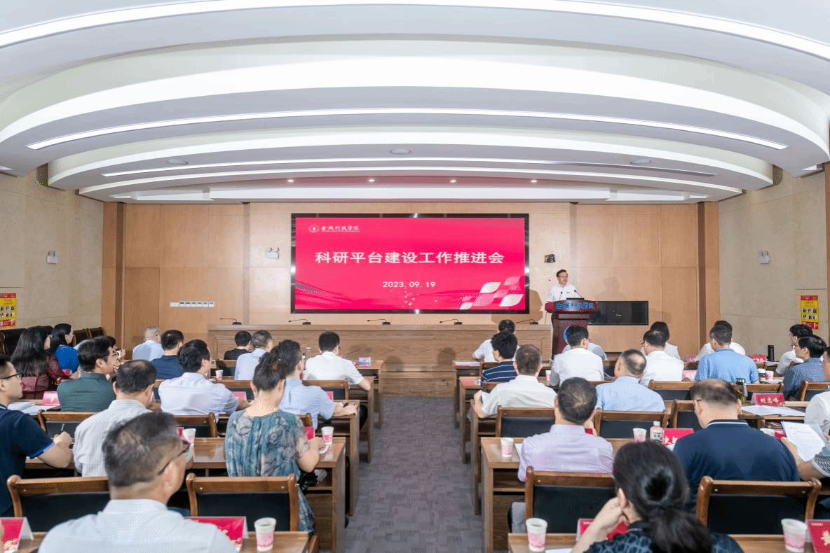 9月19日上午,我校在行政楼报告厅召开科研平台建设工作推进会。全体校领导,二级学院院长、科研副院长,监察处、督察专员及相关部门主要负责人参加会议。会议由校长刘永彪主持。