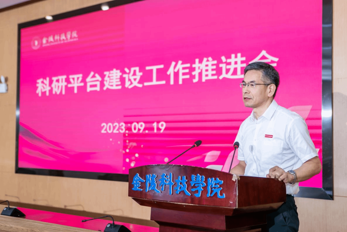 刘永彪强调,没有高水平的平台就没有高水平的科研,没有高水平的科研就没有高水平的学科,没有高水平的学科就没有高水平的大学。学校召开科研平台建设工作推进会,是实施有组织科研的重要举措。对标学校第三次党代会提出的高质量建设硕士学位授予单位、高水平建设一流应用型本科高校、高标准达到大学设置关键指标、高品质服务南京经济社会发展的“四项任务”,推动学校科研工作取得新成效,要以科研平台建设为抓手,把握好两个关键词,即“有组织”和“建平台”。他提出三点要求:一是聚力内涵建设,要以对重点学科、硕士点建设形成支撑为导向,以高水平科研成果产出为评价指标,建立绩效评价制度,狠抓目标责任落实。二是善于借力发展,要推进与高水平大学以及国家重点实验室等科研机构的合作,采用“请进来、走出去”的方式,助力学校尽快在国家级科技奖项上实现突破。三是强化服务能力,要聚焦江苏、南京经济社会发展需求,立足高校、企业在国家创新体系中的不同定位和优势,发挥学校科研平台的人才优势,积极推进产学研深度合作,不断增强学校服务南京经济发展的影响力和知名度,开创学校科学研究和科技创新的新局面。