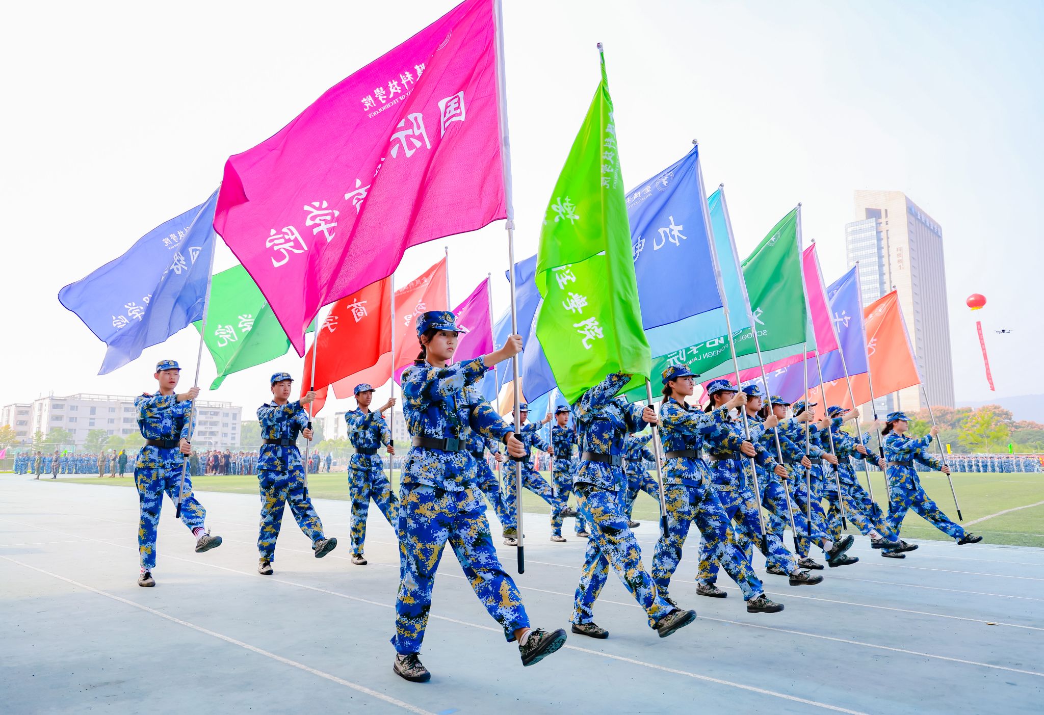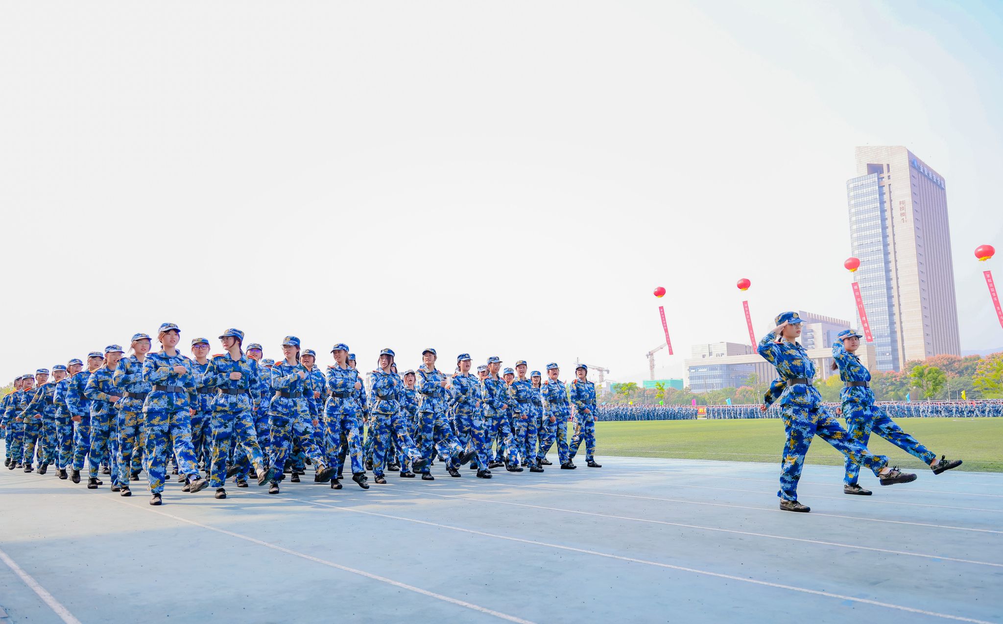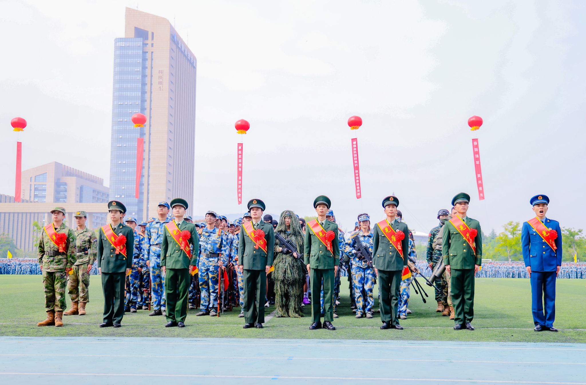 9月是“全民国防教育月”,我校军训以“踔厉奋发强国防、勇毅前行向复兴”为主题,坚持把“塑性”和“育人”贯穿始终,注重融入爱党、爱国、爱军教育内容。除训练课目外,还举办了国防教育讲座、消防安全救护综合演练、校园安全及反诈知识宣讲等丰富多彩的活动,取得了显著育人成效。