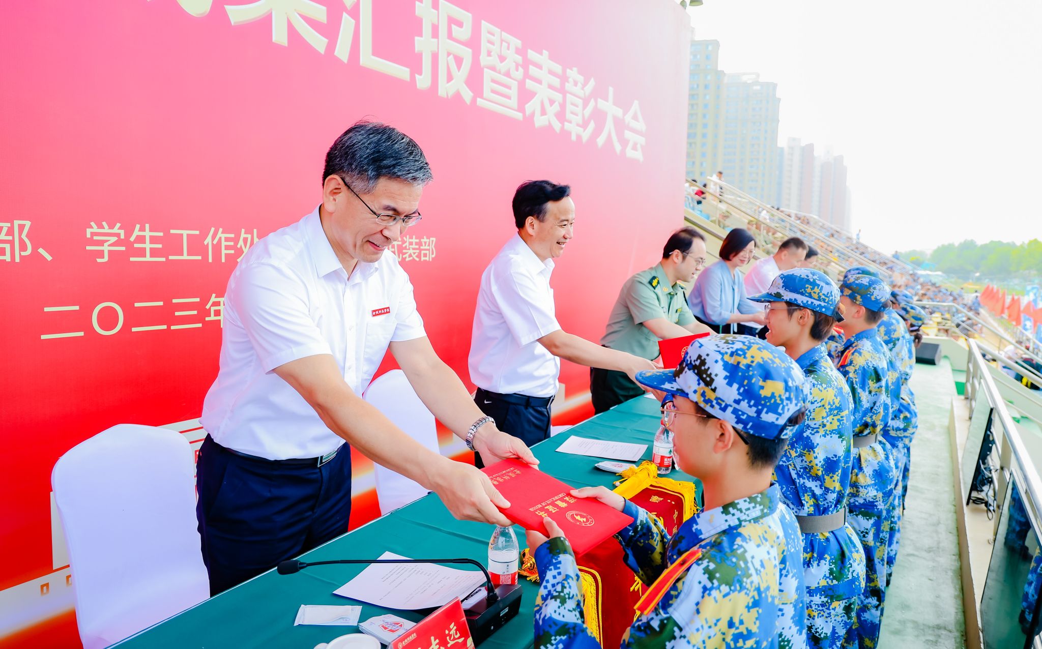 校领导向军训优秀学员代表颁发证书