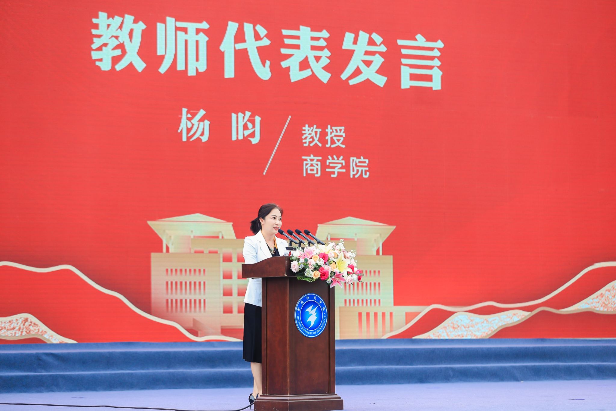 开学典礼上,教师代表杨昀、优秀校友代表罗响、在校生代表舒慧同学、新生代表李仁杰同学先后发言,师生们一起观看了军训成果视频。