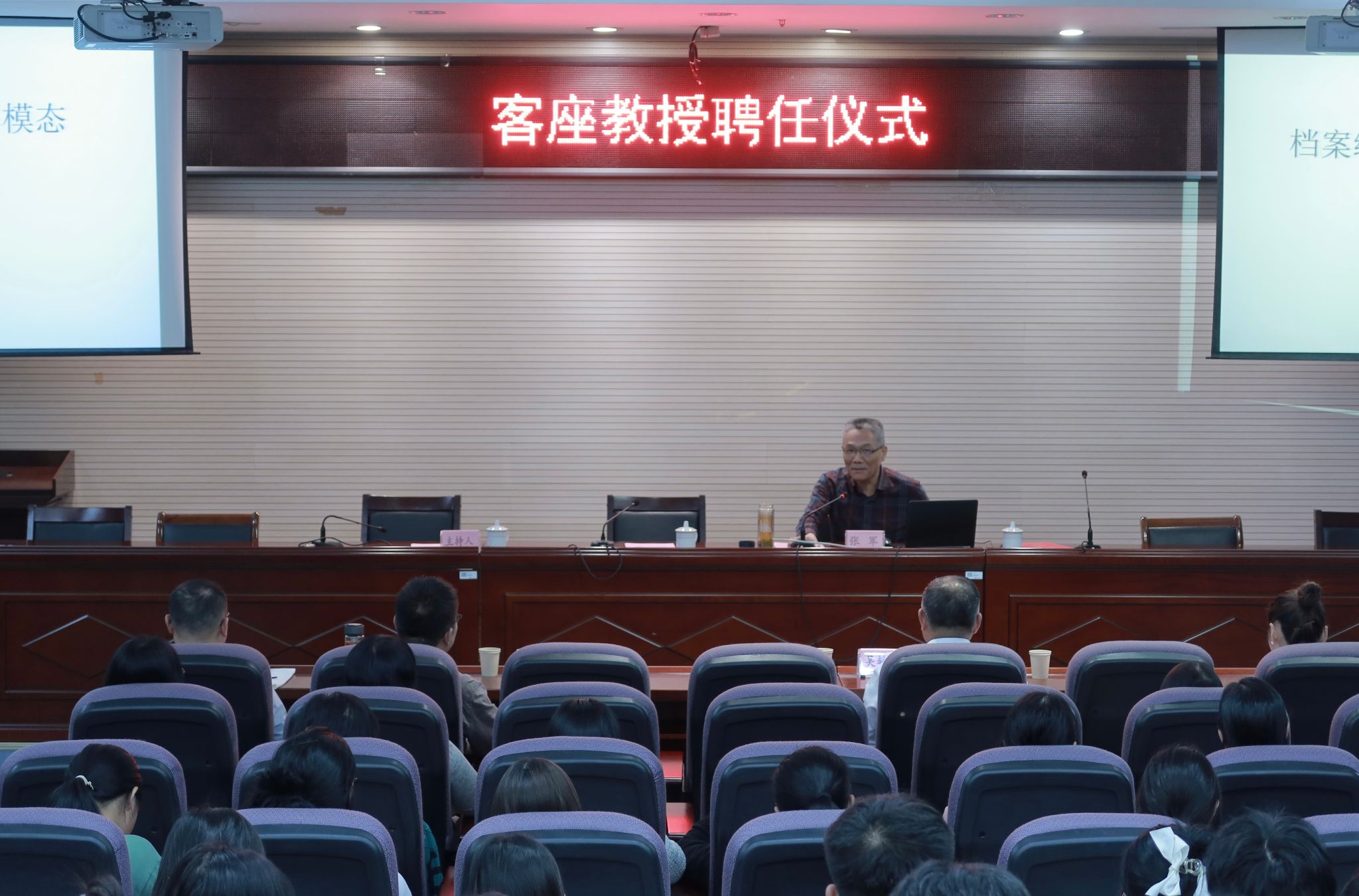10月12日下午,人文学院在幕府校区图书馆报告厅举行客座教授聘任仪式,聘请南京市档案馆一级调研员张军担任客座教授。校纪委书记王延光参加聘任仪式并为张军颁发聘书,人文学院领导班子和师生代表参加了聘任仪式。