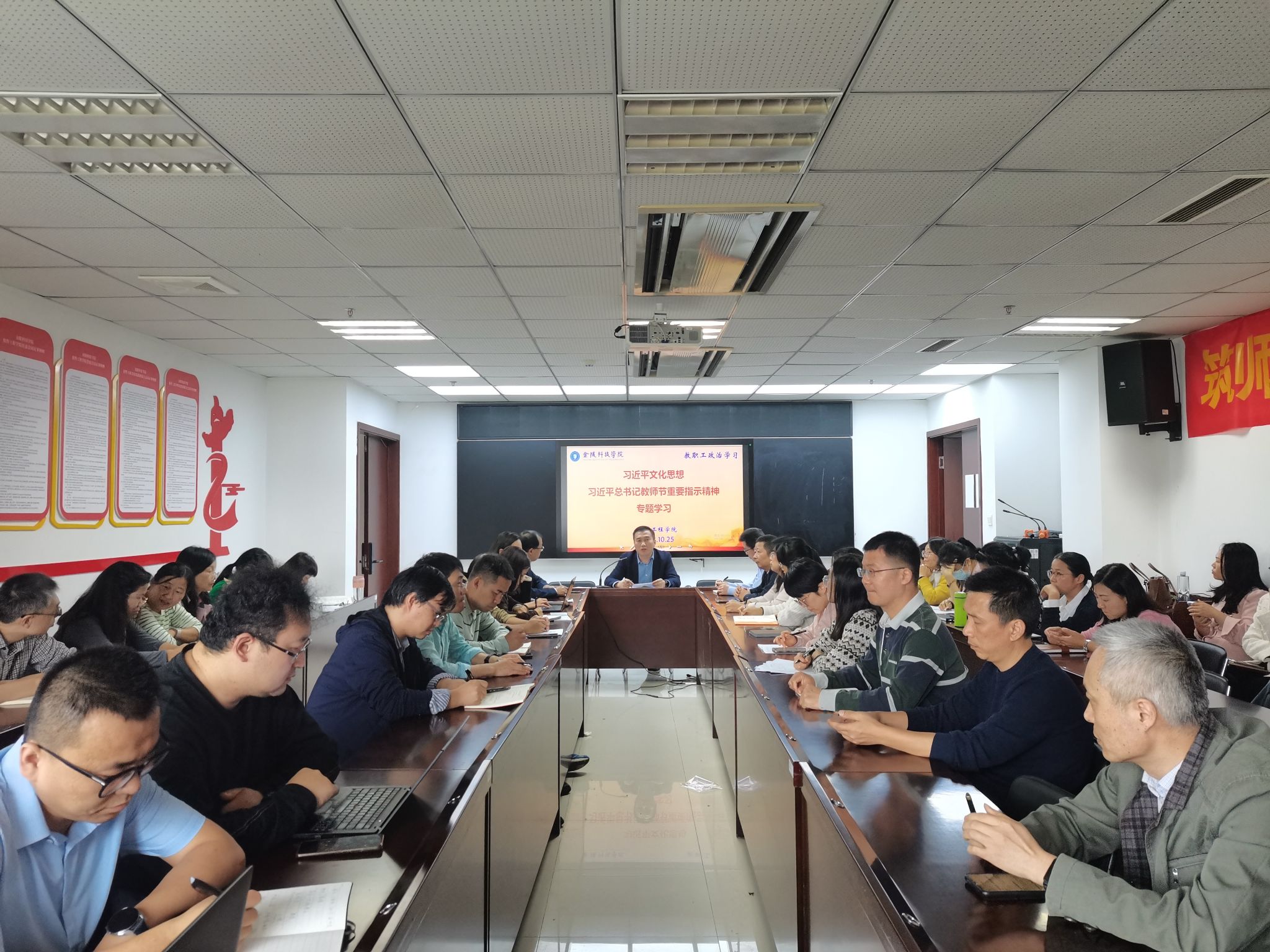 10月25日下午,我校各二级党组织开展教工政治学习,组织全体教工认真学习习近平文化思想和习近平总书记教师节重要指示精神。