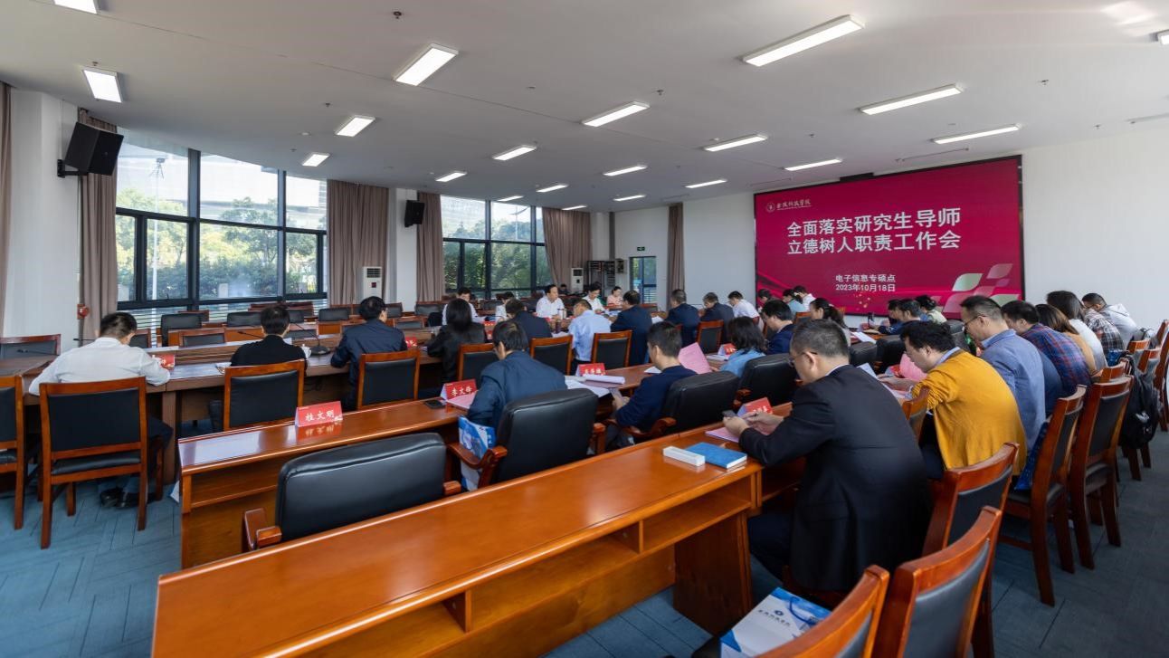 10月18日,我校在科技楼3号楼110会议室召开电子信息专硕点全面落实研究生导师立德树人职责工作会。校长刘永彪、副校长张燕、副校长叶智锐及研究生处负责人,牵头学院和共建学院书记、院长,2023级研究生带生导师、研究生秘书、研究生辅导员参加会议。会议由张燕主持。