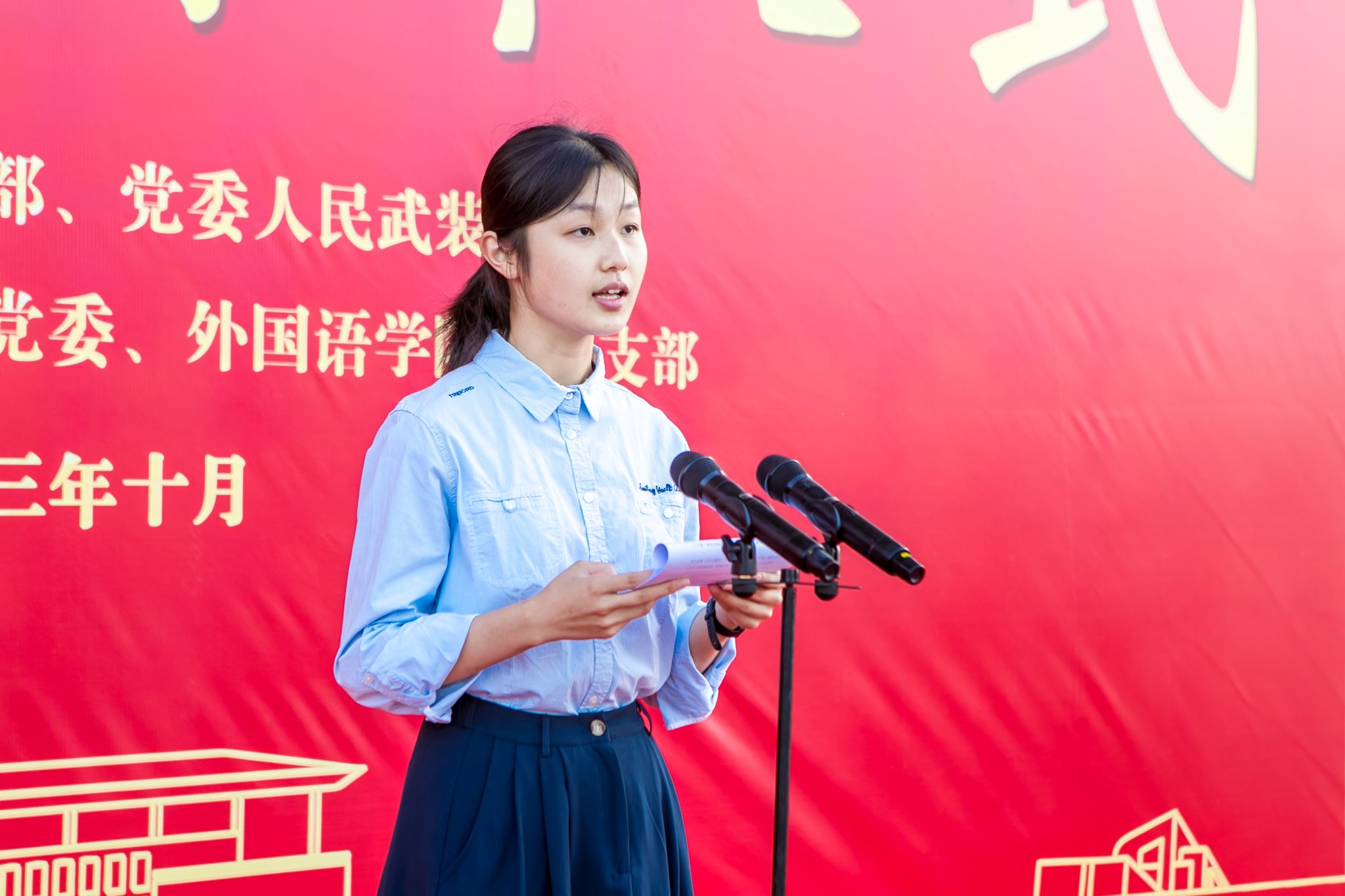 外国语学院学生代表滕菲以《担复兴大任,做时代新人》为题发言。她结合自己的在校经历鼓励大家投身实践,在磨砺中坚强,在奋斗中成长。