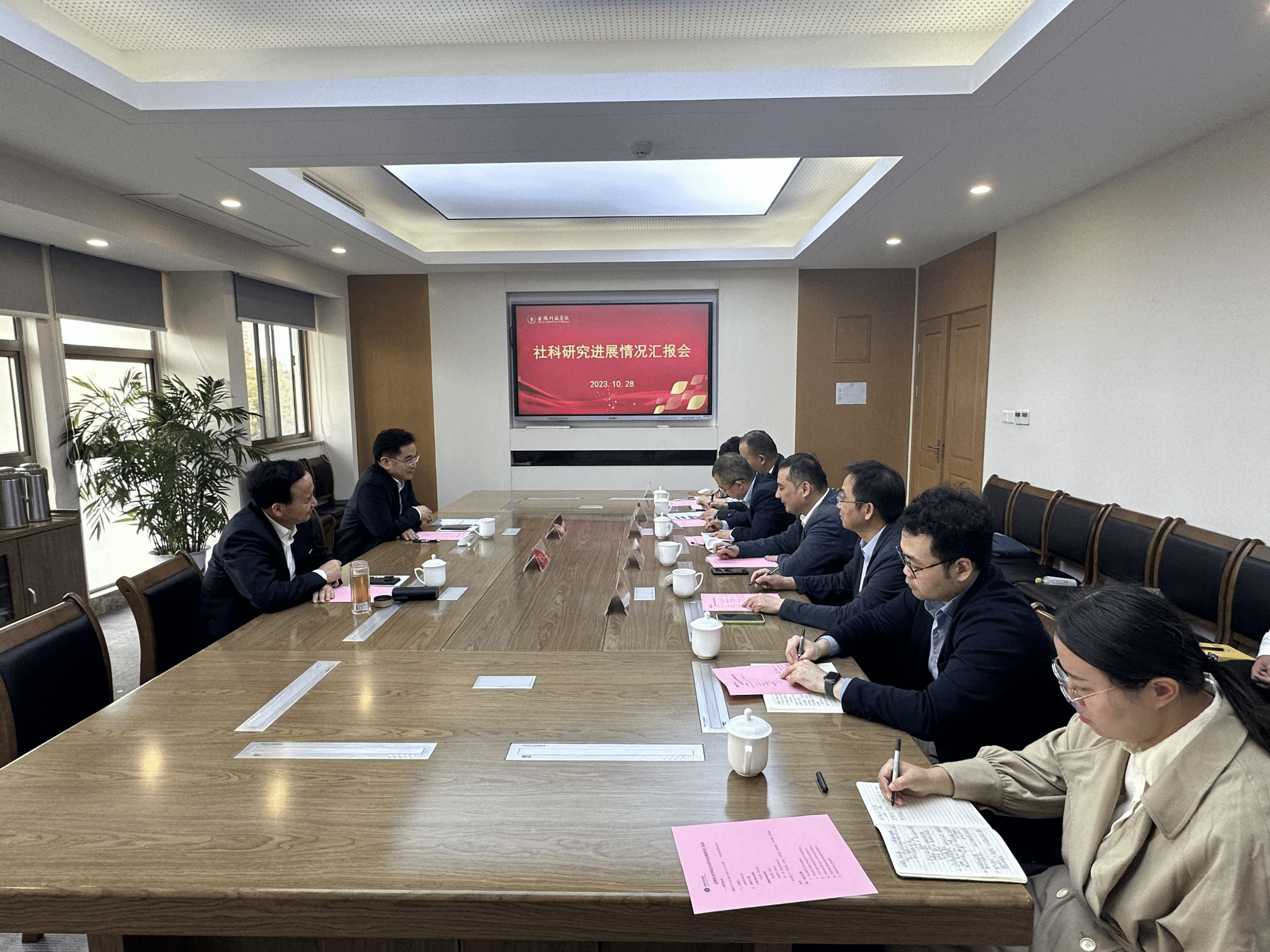 会上,科技处副处长沈凌汇报了我校社科研究工作的进展情况及取得的成效。我校江苏省数字技术与产业经济应用工程研究中心、江苏数字化转型发展培育研究基地、江苏省企业知识产权战略研究中心、长江双碳经济发展研究院等相关科研平台、新型智库负责人围绕数字经济、知识产权、双碳发展以及南京金融等方面的研究开展情况进行了汇报。