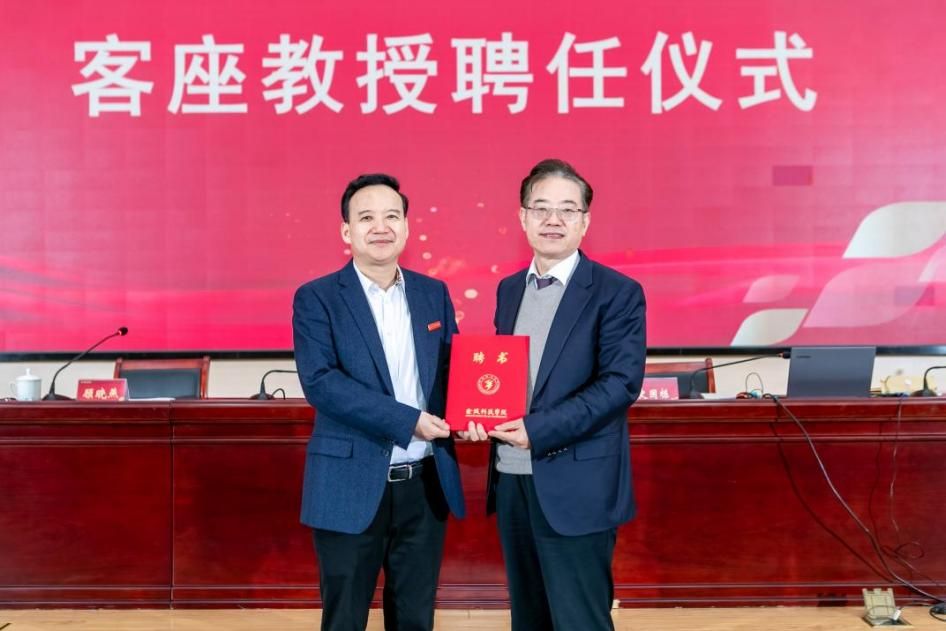 会议举行了客座教授聘任仪式,聘请全国知名高等教育管理专家、常州大学原党委书记史国栋教授为我校客座教授,进一步助力产教融合高质量、激活学校发展新动能。刘永彪为史国栋教授颁发聘书。