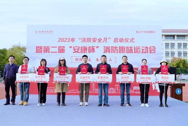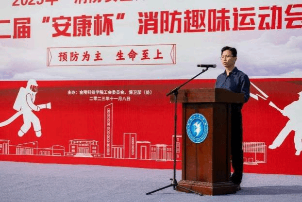 11月8日,在第32个全国消防日来临之际,我校在江宁校区南区体育场举办了2023年度“消防安全月”活动启动仪式暨第二届“安康杯”教职工消防趣味运动会。南京市科教卫体工会联合会四级调研员王红星、南京市江宁区消防救援大队副大队长钟鹏、参谋吕天杰应邀参加活动,副校长叶智锐出席活动并讲话,保卫处处长骆德军主持启动仪式。