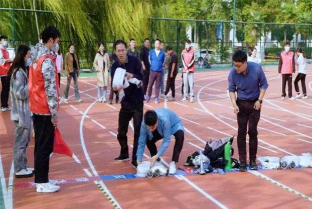 消防趣味运动会设置模拟报警、消防服着装、铺设水带、规范灭火等4个项目,融竞争性、趣味性、健身性、教育性于一体,将消防常识融入各个环节之中。通过模拟火灾中遇到的不同情况,参赛队员锻炼了处乱不惊、沉着冷静扑救火灾和逃生自救的能力,在充分发挥集体智慧和协作配合能力的同时,接受了一次消防安全知识的“集中充电”。