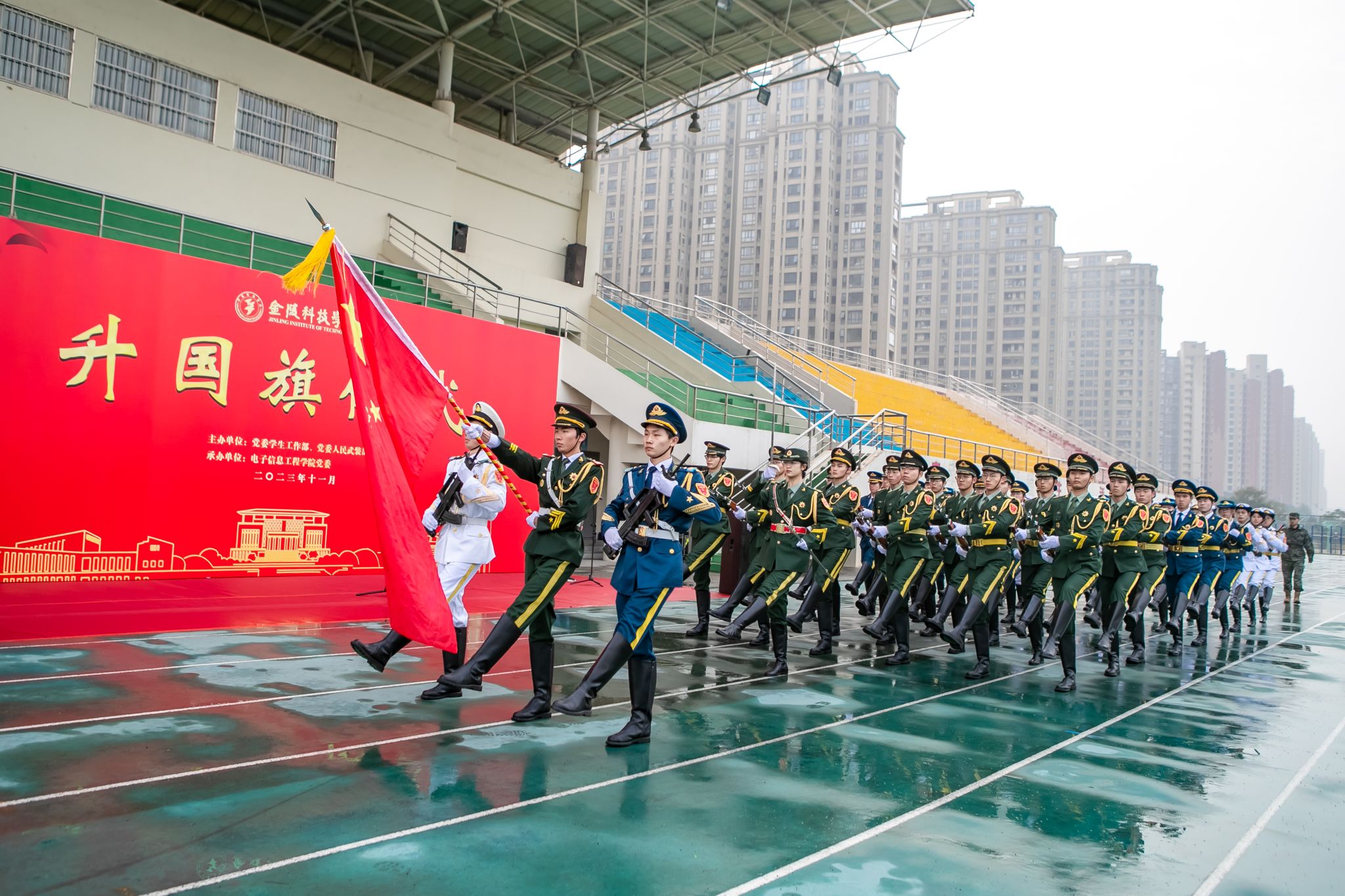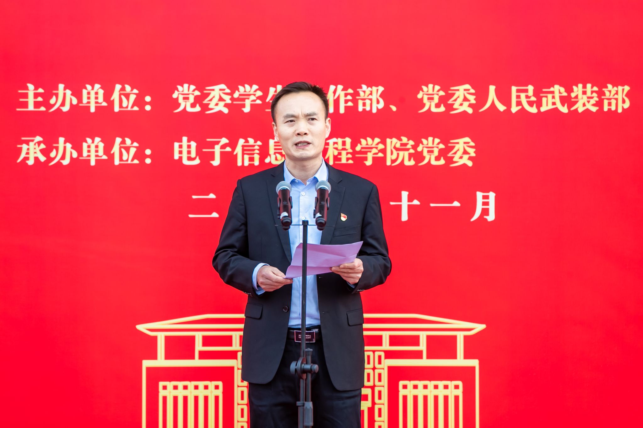 11月16日清晨,我校在江宁校区北区田径场隆重举行升国旗仪式。校纪委书记王延光出席活动,党委学生工作部、党委人民武装部全体人员及电子信息工程学院师生代表参加活动。仪式由党委学生工作部、党委人民武装部主办,电子信息工程学院承办。