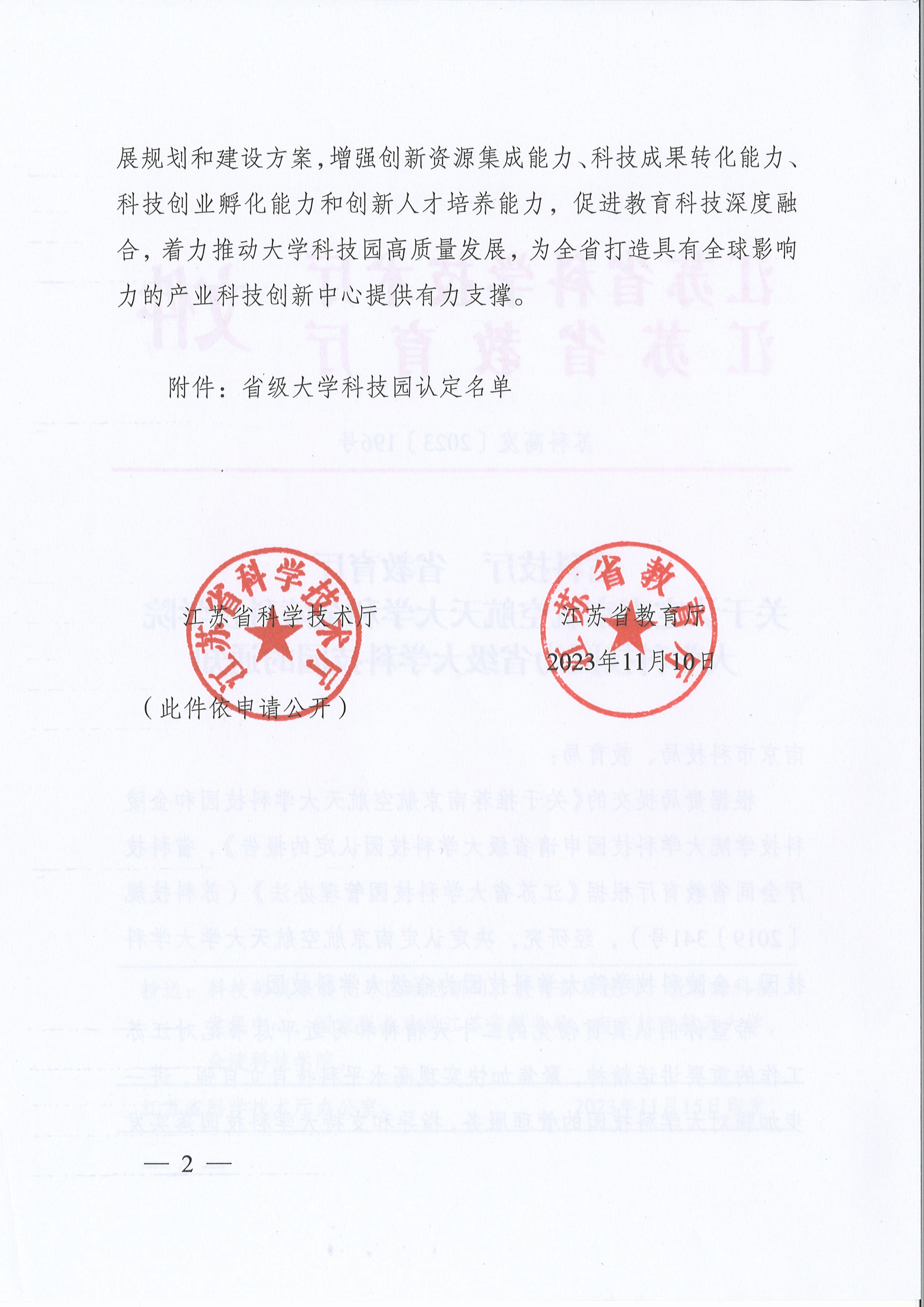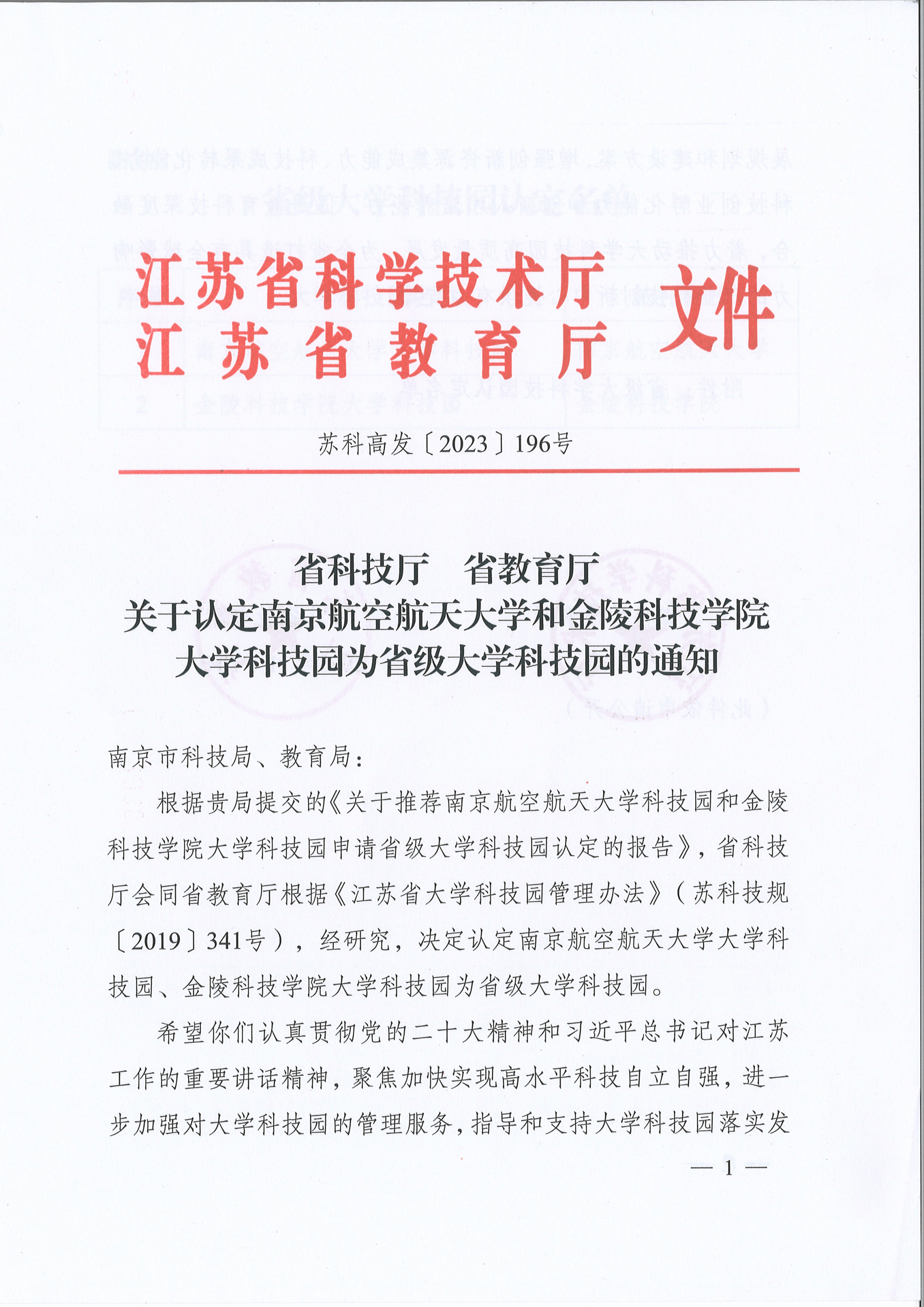 近日,江苏省科学技术厅、江苏省教育厅联合印发《省科技厅省教育厅关于认定南京航空航天大学和开云在线大学科技园为省级大学科技园的通知》,经属地(区)审查,市科技局、教育局推荐,现场质询答辩、专家组评审,省科技厅、教育厅审议、公示等环节,认定我校大学科技园为省级大学科技园。