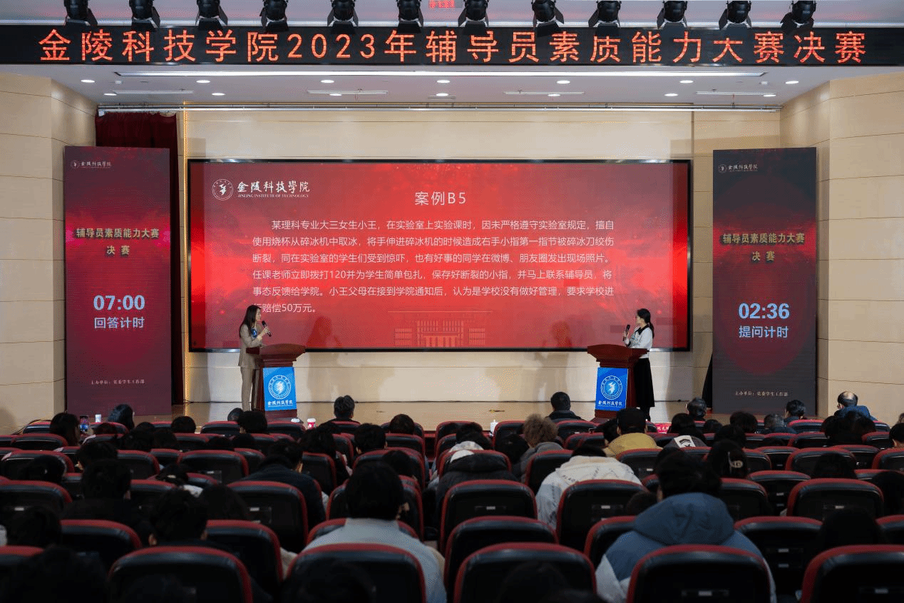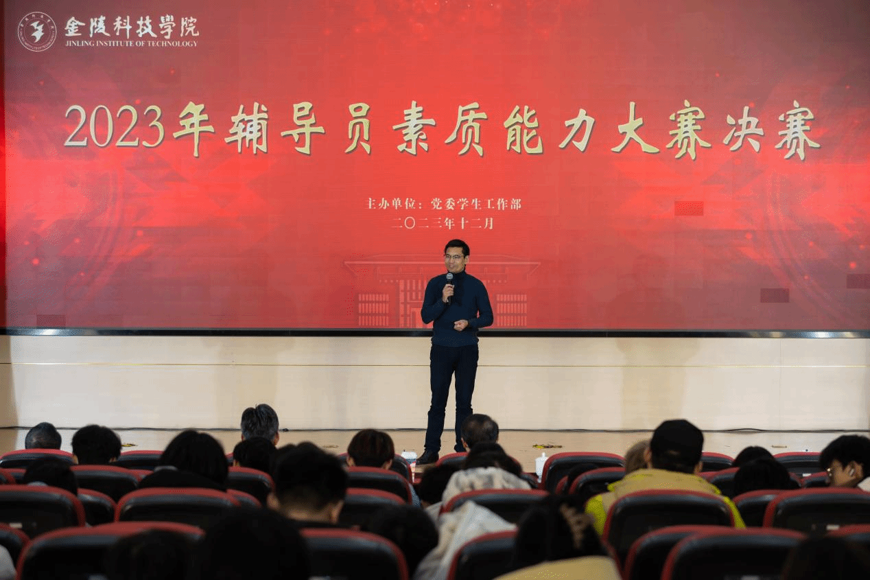 12月15日下午,我校2023年辅导员素质能力大赛决赛在江宁校区科技楼报告厅举行。校党委副书记单晓峰出席活动,南京晓庄学院学生工作处处长李伟、南京农业大学学生工作处副处长黄绍华、南京工程学院学生工作处副处长于跃进及我校党委学生工作部部长汪如春,招生与就业指导处处长闵光琛,团委副书记沐阳、网络与通信工程学院党委副书记董宇、材料工程学院党委副书记陈智慧、国际教育学院党总支副书记郑庆秋应邀担任活动评委。其他各学院学生工作书记、副书记、辅导员及学生代表到场观摩了比赛。