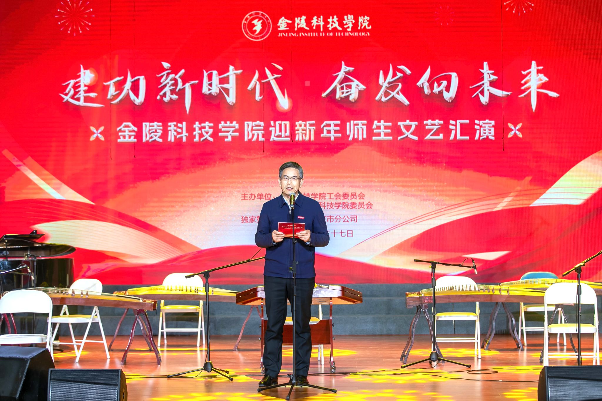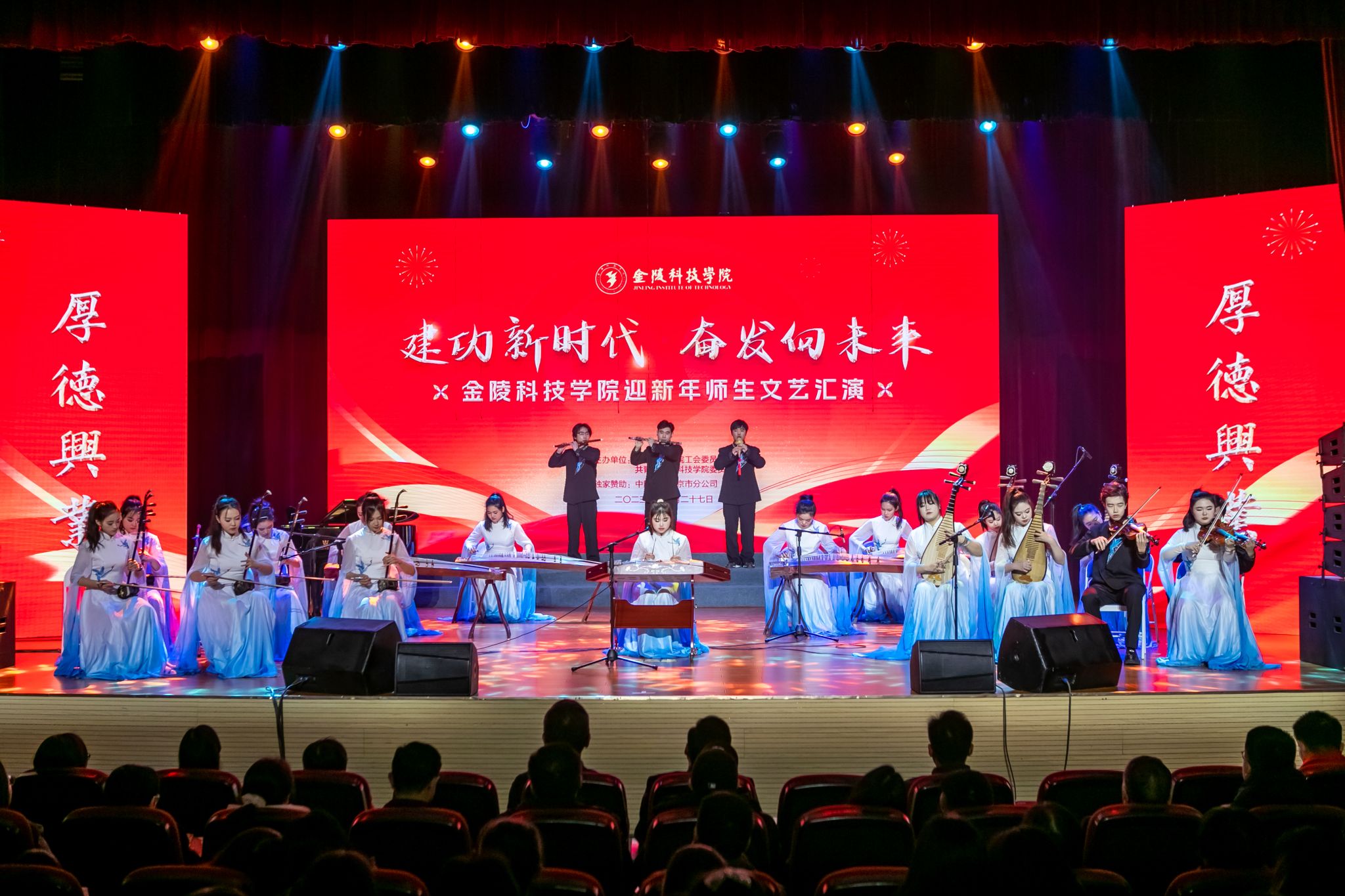 岁聿云暮,一元复始。12月27日下午,我校在江宁校区大学生活动中心剧场举办“建功新时代 奋发向未来”迎新年师生文艺汇演。校党委书记刘志远、校长刘永彪、副校长张燕、纪委书记王延光、副校长顾晓燕出席活动,各职能部门负责人、二级学院党政负责人、教师代表、学生代表参加活动。