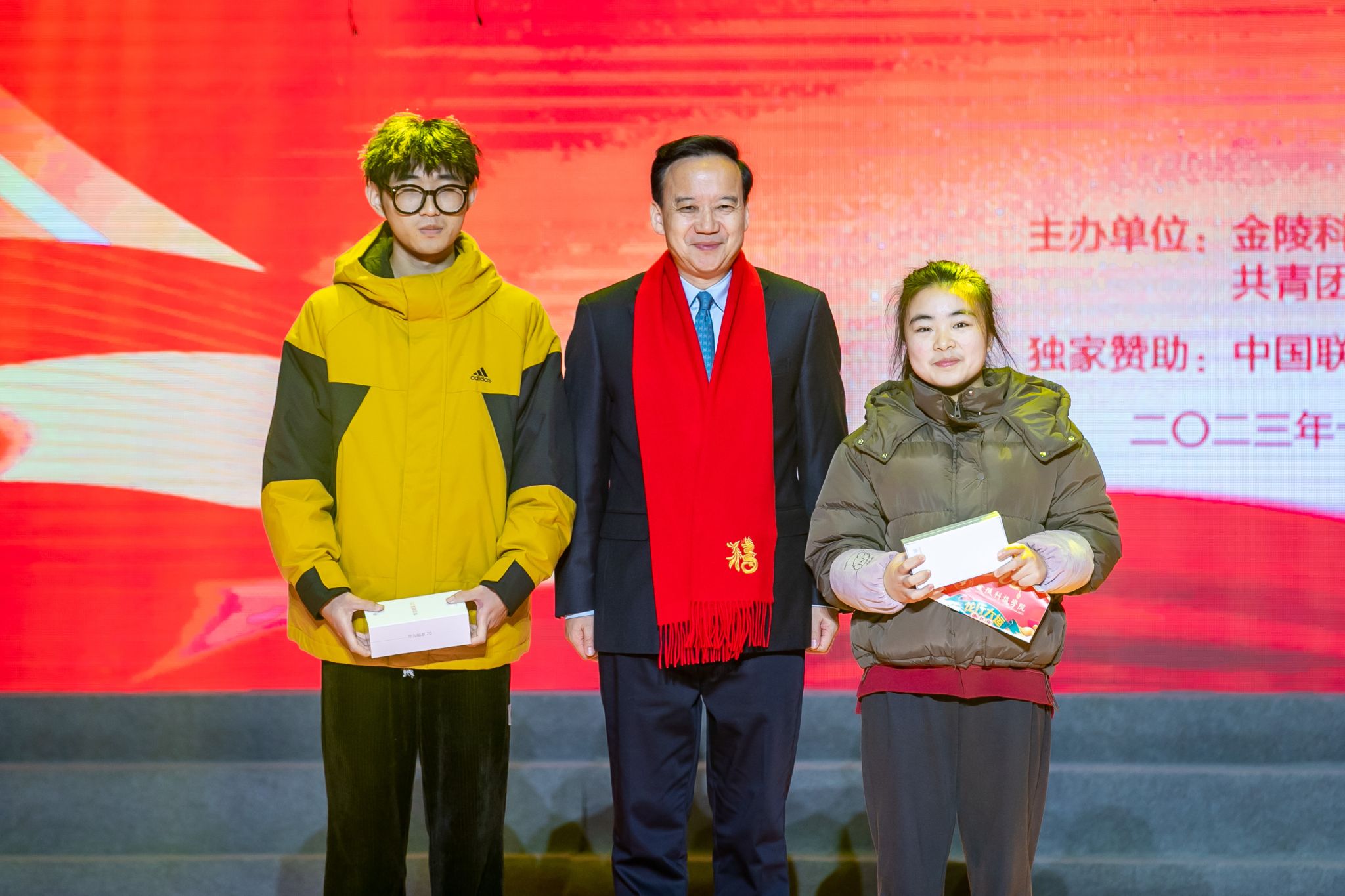 文艺汇演活动设置了抽奖环节,特别邀请出席校领导,党委组织部、党委教师工作部、党委学生工作部主要负责人抽取奖券,为中奖师生颁发中国联通南京分公司赞助的奖品。师生共享新年喜悦。