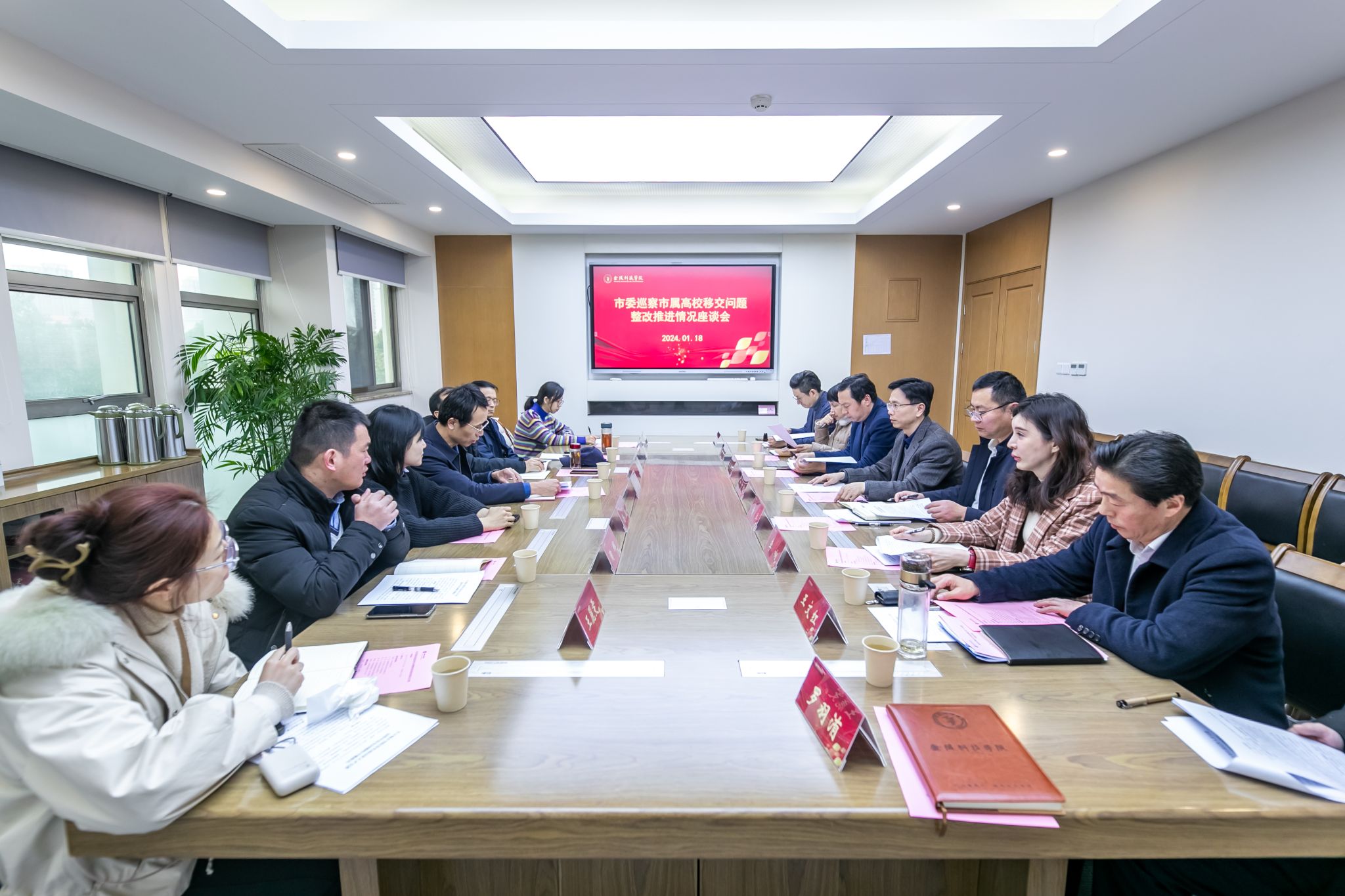 1月18日,由市科技局牵头的市委巡察市属高校移交问题整改推进小组来我校调研座谈。市科技局副局长王愿华、市教育局机关纪委专职副书记韦亮、市人社局人才开发处副处长杨欢、市审计局科教文处副处长冒兵、市发改委创新和高技术发展处干部陶辉等一行对我校在高层次人才引进、科研工作等方面存在的共性问题进行交流。副校长叶智锐主持座谈会,党委办公室、校长办公室、人力资源处、科技处、财务处、审计处、商学院等相关部门负责人参加会议。
