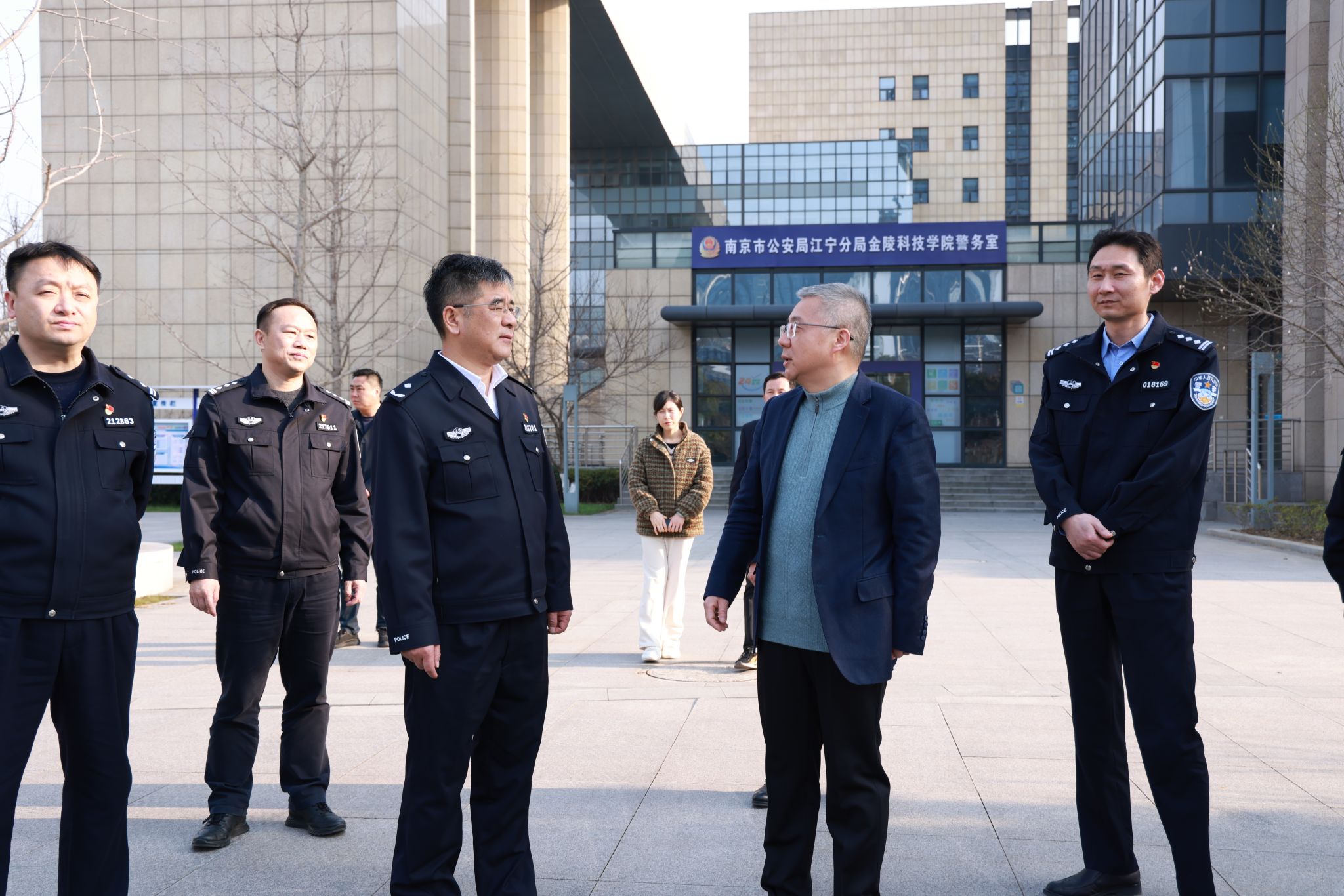 3月8日下午,江宁区人民政府副区长、党组成员,区公安分局党委书记、局长、督察长梅中亚,区公安分局副局长季海一行来我校走访调研。学校党委常委、副校长高永祥及相关部门负责人陪同调研。