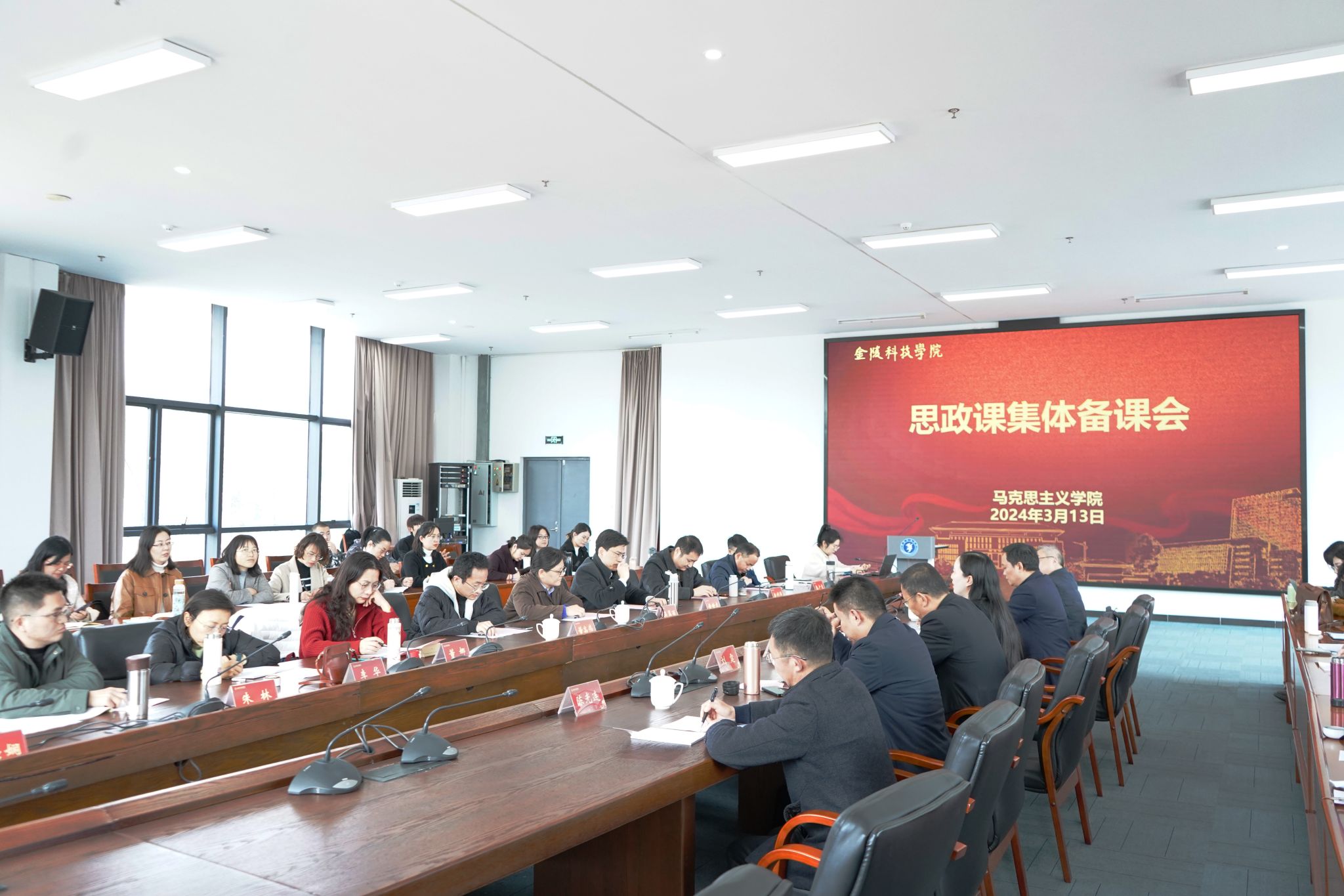 3月13日下午,我校召开思政课集体备课会。南京大学马克思主义学院副院长吴翠丽教授、河海大学马克思主义学院党委书记黄世虎教授、中国药科大学马克思主义学院副院长董高伟教授、南京工程学院马克思主义学院赵利群副教授应邀参会。副校长顾晓燕、教务处处长田祥宏、马克思主义学院党政领导及全体教师参加会议。会议由马克思主义学院副院长葛维东主持。