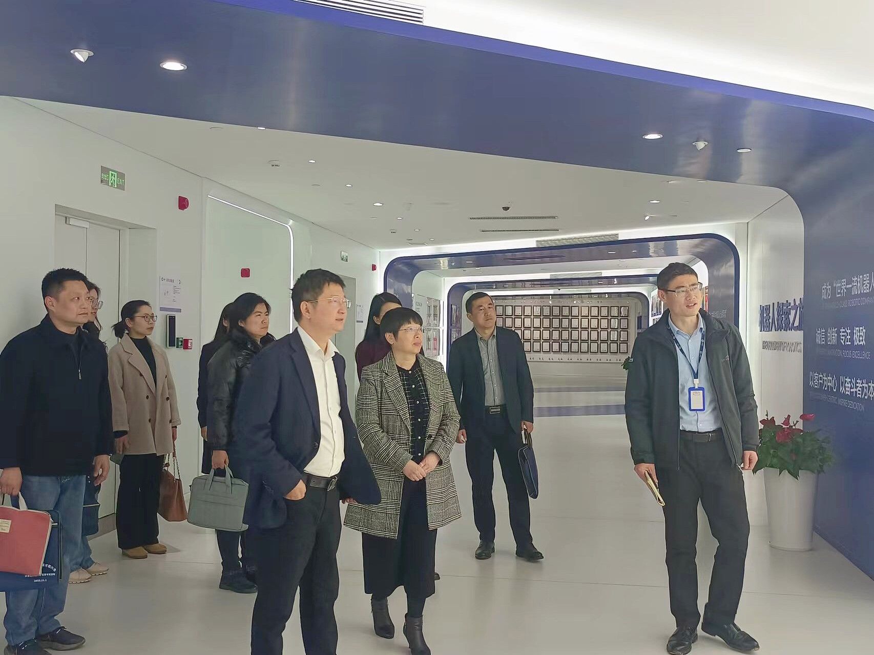 亿嘉和科技股份有限公司副总裁严宝祥对我校一行的到来表示热烈欢迎,并带领大家参观了公司成果展厅,详细介绍了公司在电力、消防、清洁、医疗机器人等领域的产品研发及产业布局情况。