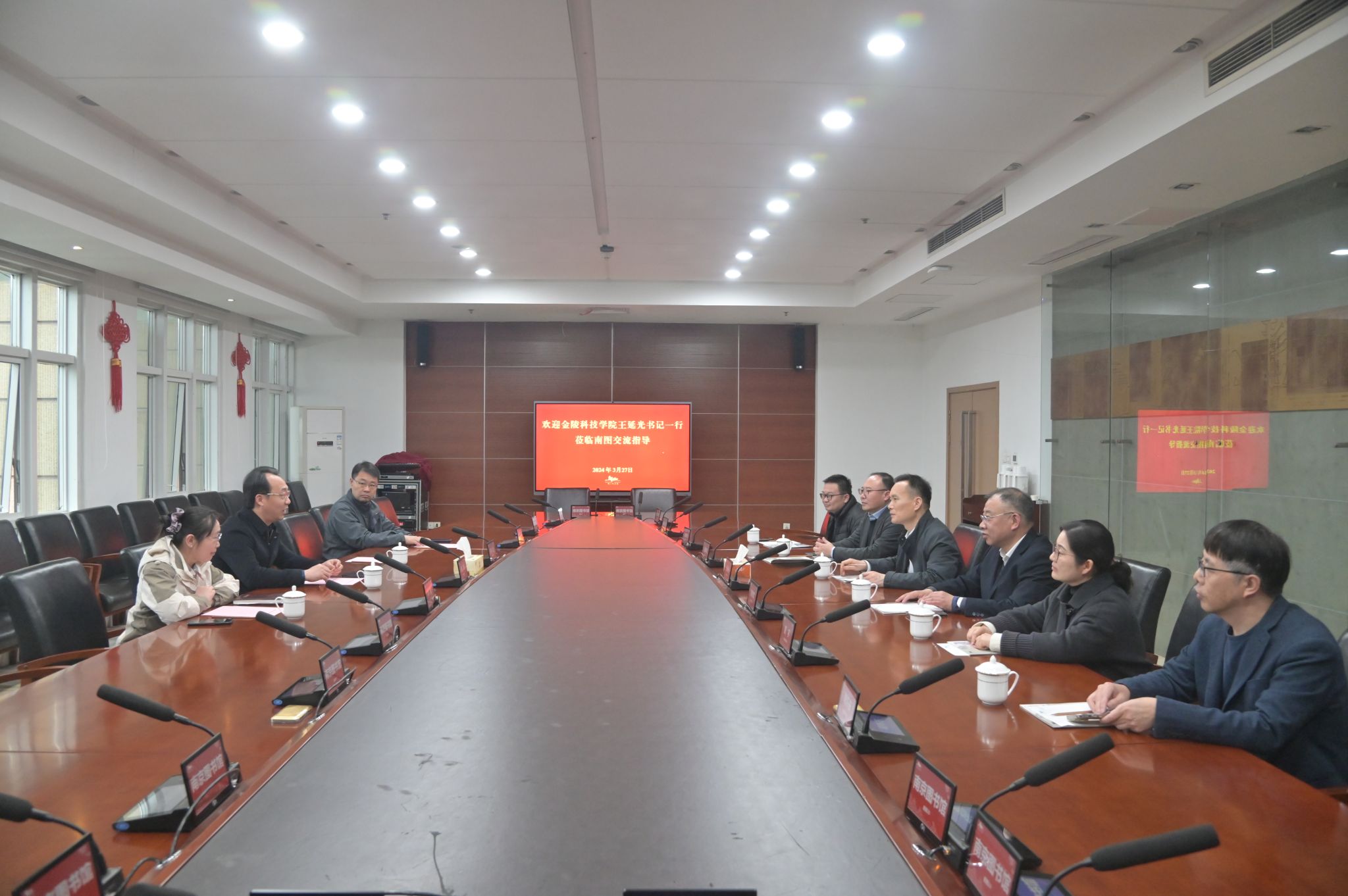 王延光介绍了学校总体情况和办学特色,他表示,要向南京图书馆学习工匠精神、服务意识和共享理念,希望以此次访企拓岗活动为契机,更好地彰显学校办学定位和人才培养特色,进一步加强校馆合作,尤其是深化古籍数字化课程开发、基地建设、师资培养和行业指导等方面的工作,助力毕业生更高质量就业。