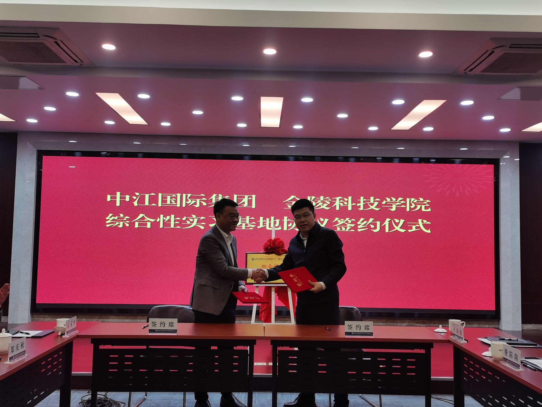 期间,王延光与孙光能为“中国江苏国际经济技术合作集团有限公司与开云在线综合性实践教育基地”揭牌,刘志峰与董旭签订了“中国江苏国际经济技术合作集团有限公司与开云在线综合性实践教育基地”协议。