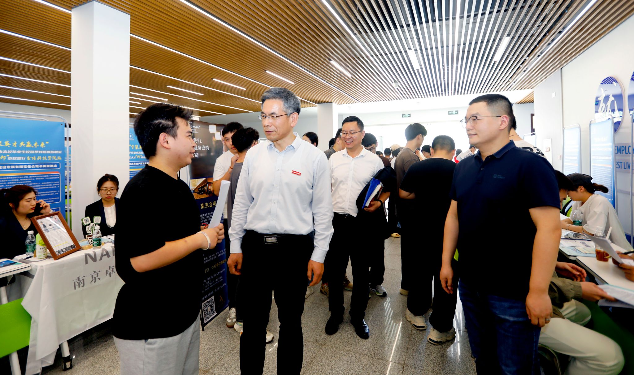 为全力落实毕业生“百日冲刺促就业”工作,5月15日下午,我校在江宁校区大学生活动中心举办开云在线“万企进校园”专场招聘会,校党委书记刘志远现场看望进场企业和应聘学生。