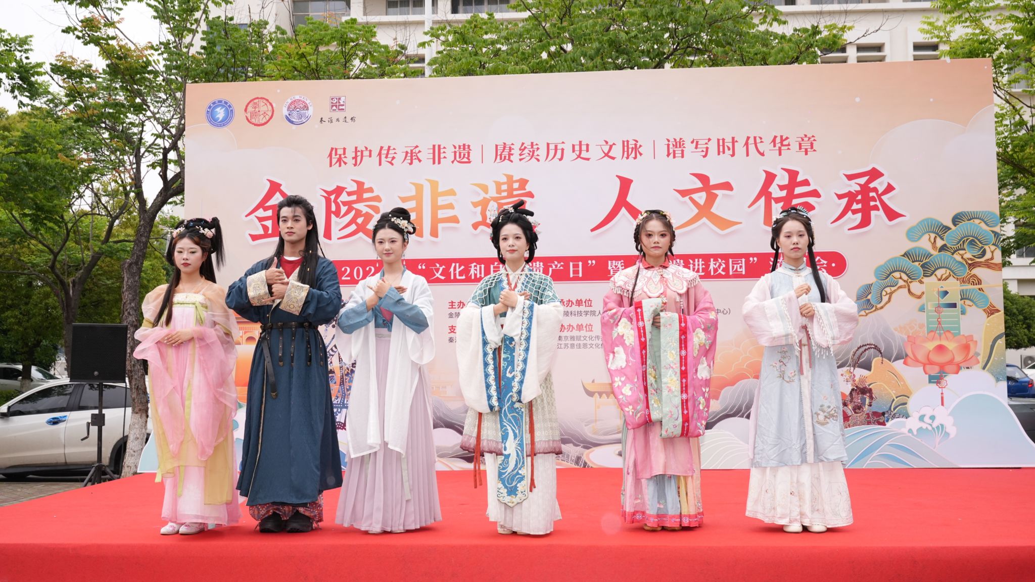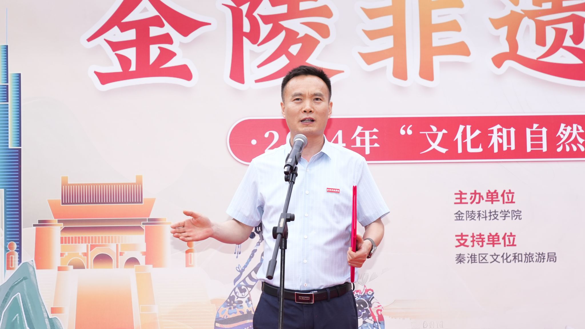 “感悟金陵非遗,传承人文之美!”6月5日中午,由我校主办、人文学院和秦淮·非遗馆(南京市非遗体验中心)联合承办的2024年“文化和自然遗产日”暨“非遗进校园”游园会在江宁校区举办。副校长王延光、秦淮·非遗馆副馆长江楠、秦淮区文化馆非遗部主任姜于暄、学校部分职能部门和二级学院负责人参加活动。