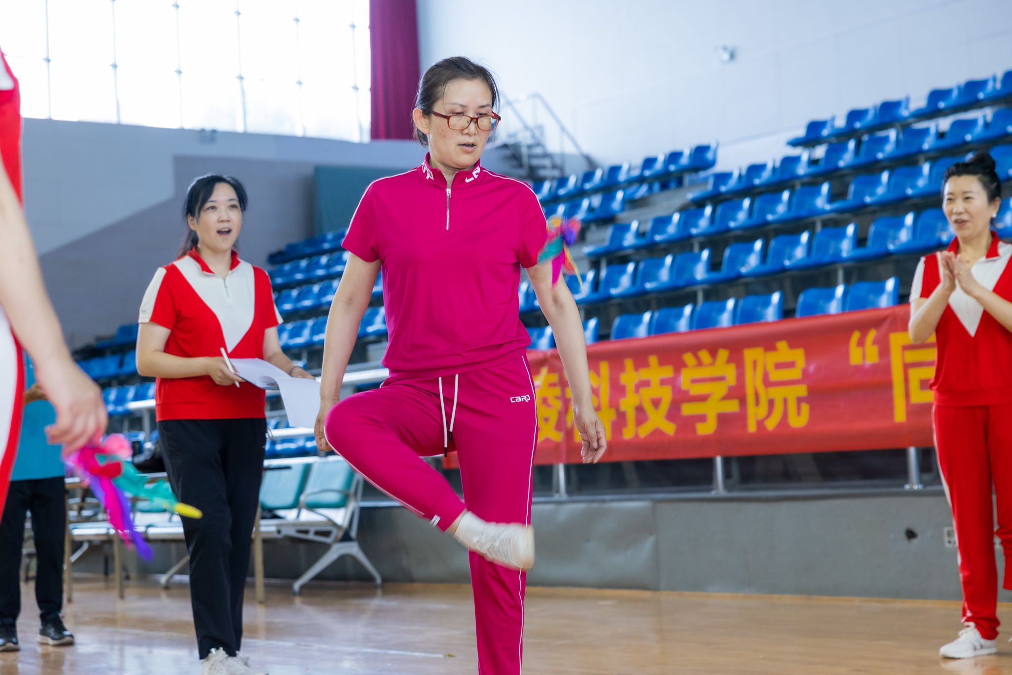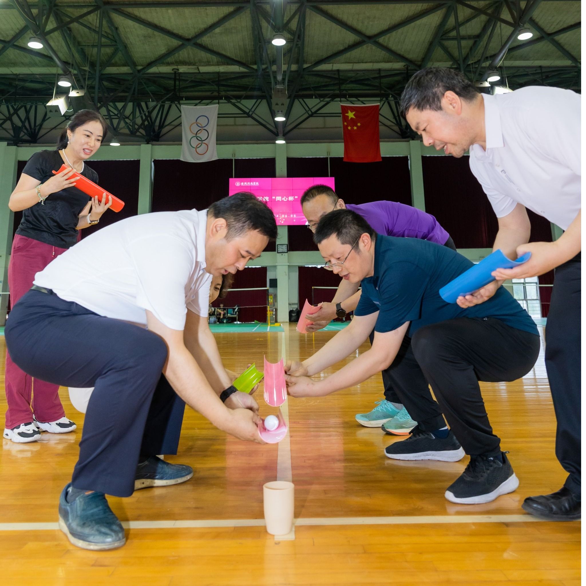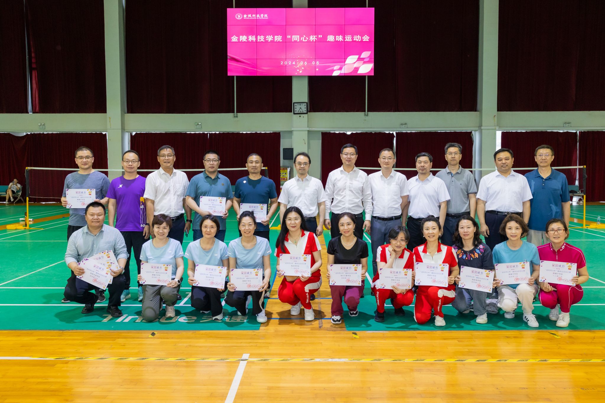 为庆祝新中国成立75周年,进一步增强全校各民主党派基层组织及统战团体凝聚力,夯实思想共识,6月5日下午,由校党委统战部、体育部、工会联合举办的“金科同心杯”趣味运动会在我校江宁校区体育馆成功举办。