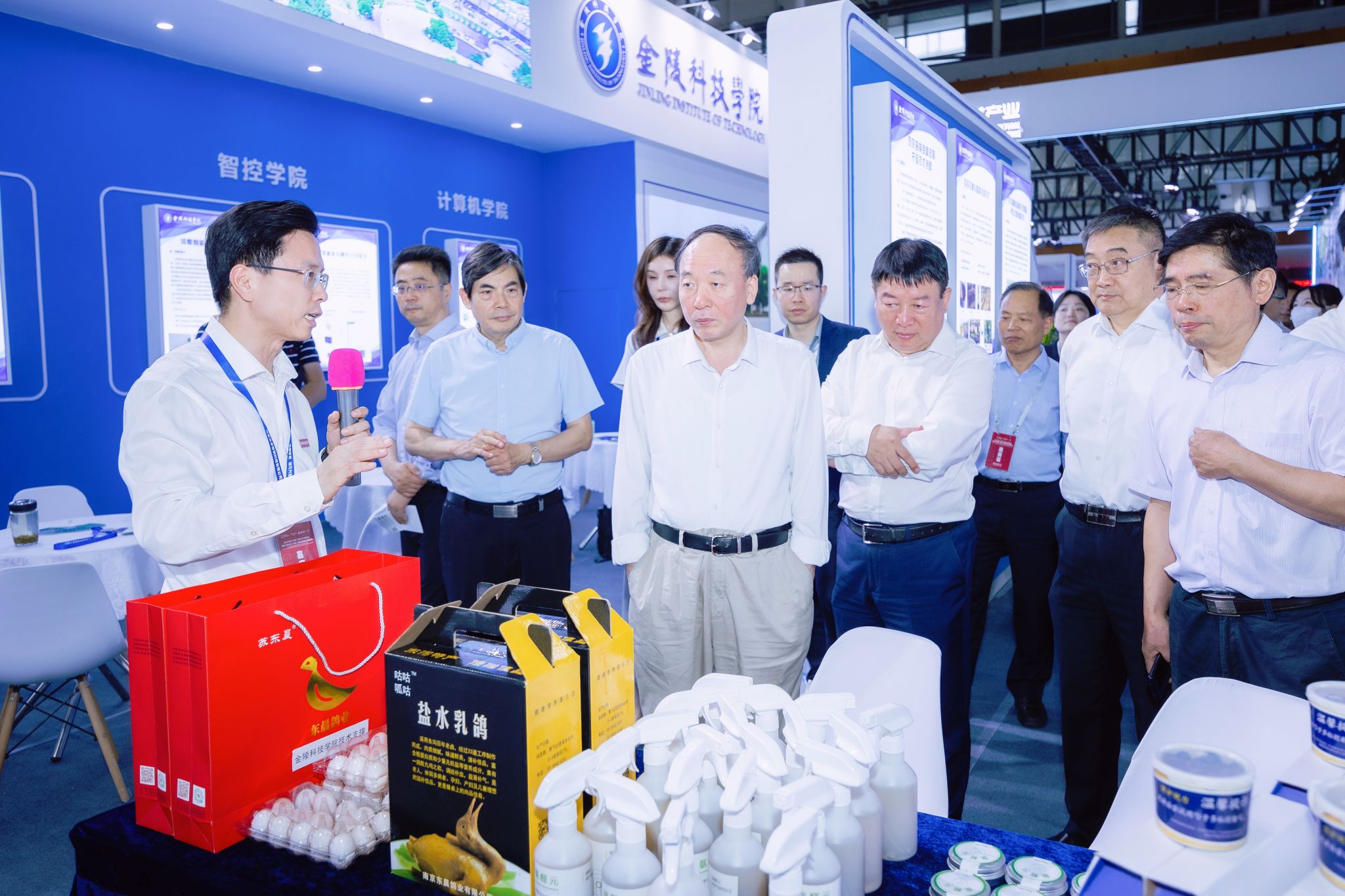 我校参展的学院主要有动物科学与食品工程学院、园艺园林学院、软件工程学院、智能科学与控制工程学院、计算机工程学院、继续教育学院,涵盖动物生态养殖、园林园艺作物育种、智慧水产养殖等方面,参展成果主要包括中草药+疫苗防控肉猪生产技术、蓝莓控根容器栽培技术、河蟹智能巡养一体化技术等15项农业科技成果。展览期间,参会企业代表与我校科研人员进行了深度交流对接,南京市农垦集团、宿迁市农业农村局、山东博华高效生态农业科技有限公司等涉农单位对我校参展的河蟹智能巡养一体化技术,桃叶卫矛、观赏海棠育苗技术表示了高度兴趣及合作意向。