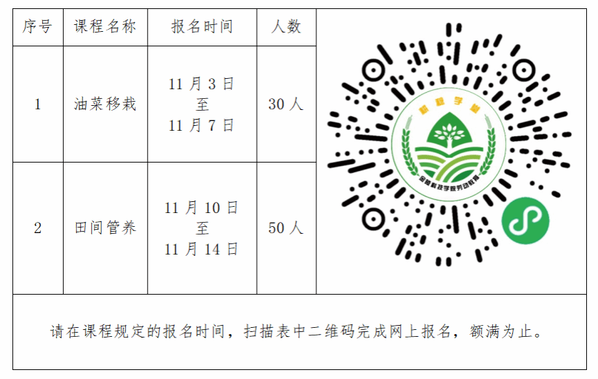 2.11月19日至本学期结束(一般为周三下午):田间管养劳动实践