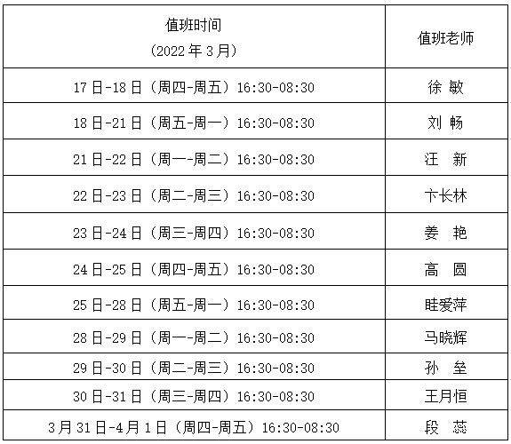 2.疫情期间校内24小时热线值班安排(见下表)
