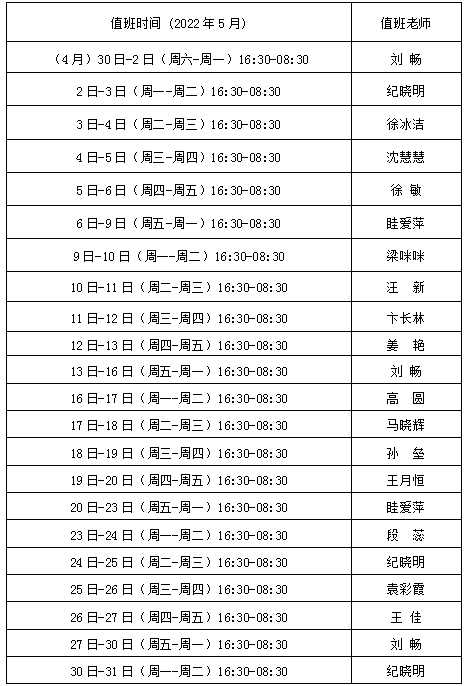 2.疫情期间校内24小时热线值班安排(见下表)