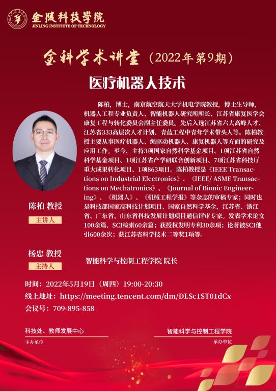 关于举办线上“金科学术讲堂—医疗机器人技术”学术报告的通知