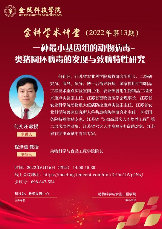 关于举办线上“金科学术讲堂—一种最小基因组的动物病毒—类猪圆环病毒的发现与致病特性研究”学术报告的通知