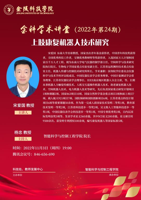 关于举办线上“金科学术讲堂—上肢康复机器人技术研究”学术报告的通知