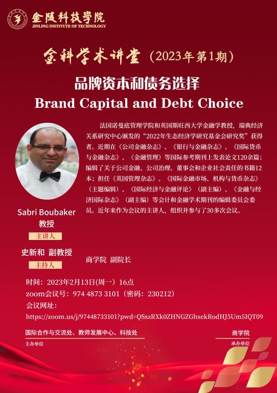关于举办线上“金科学术讲堂——品牌资本和债务选择 Brand Capital and Debt Choice”学术报告的通知