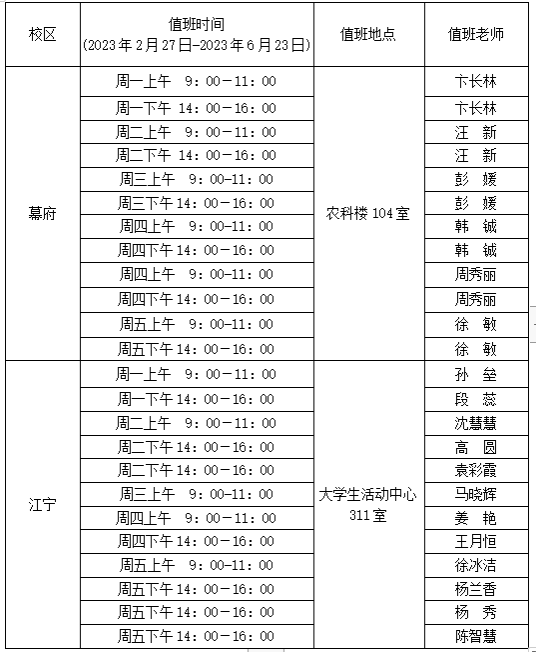 3.心理咨询值班安排(见下表)
