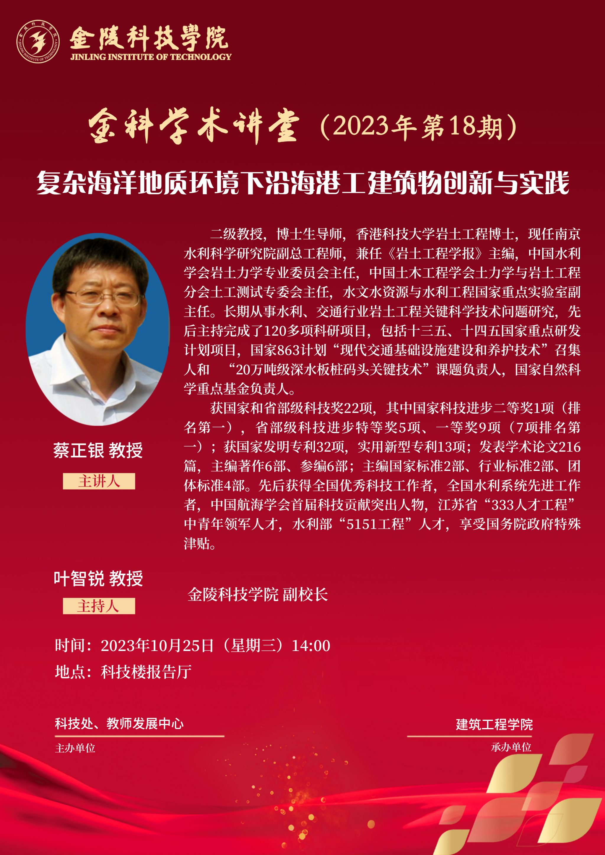 开云(中国)“金科学术讲堂——复杂海洋地质环境下沿海港工建筑物创新与实践”学术报告的通知