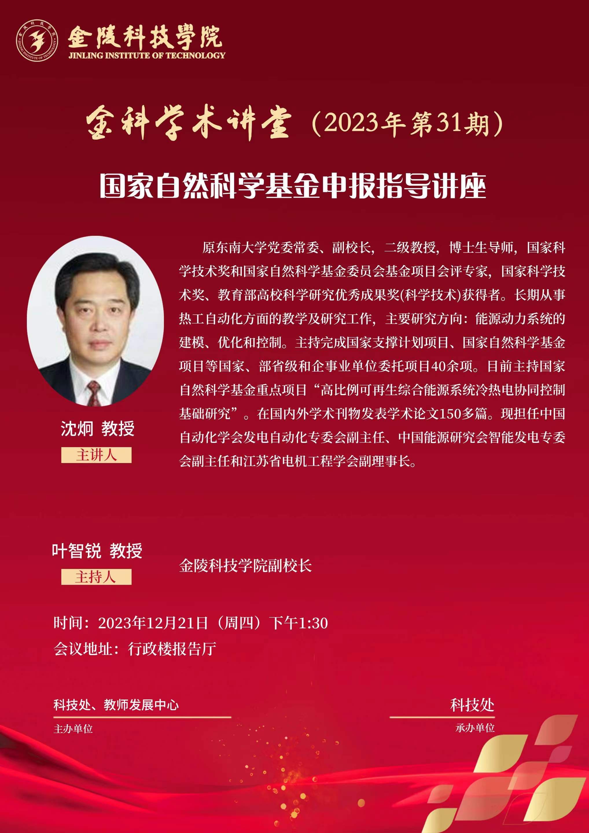 关于举办“金科学术讲堂——国家自然科学基金申报指导讲座”的通知