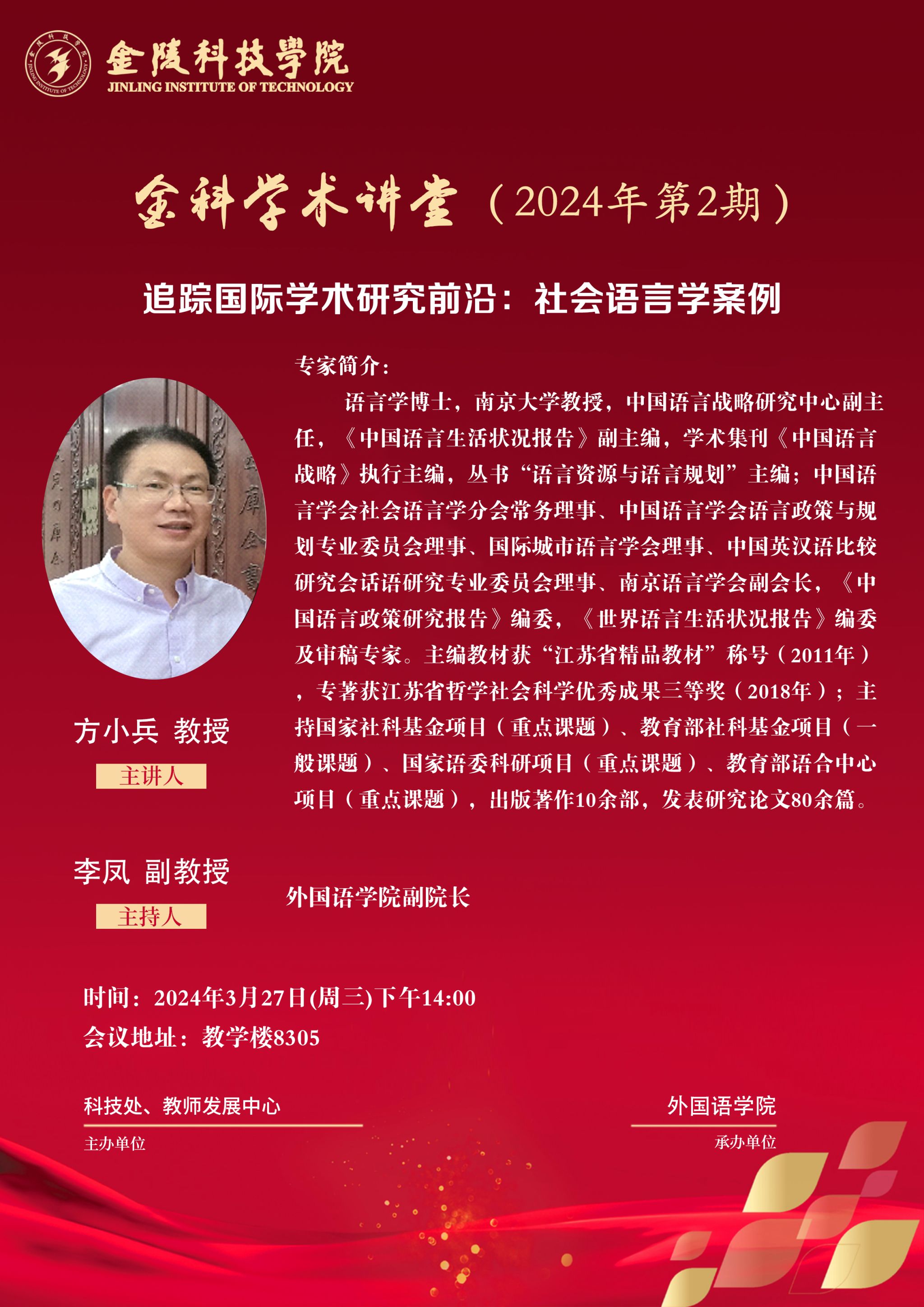 关于举办“金科学术讲堂——追踪国际学术研究前沿:社会语言学案例”的通知