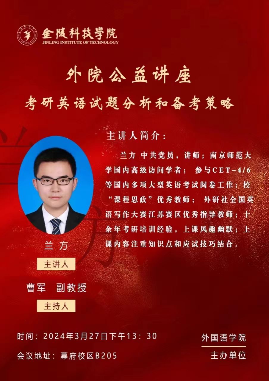 关于举办“外院公益讲座——考研英语试题分析和备考策略”的通知