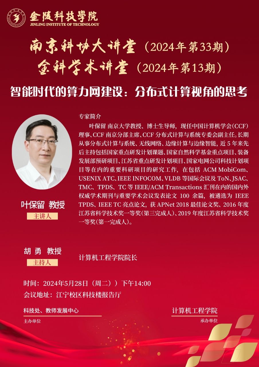 开云(中国)“金科学术讲堂——智能时代的算力网建设:分布式计算视角的思考”学术报告的通知